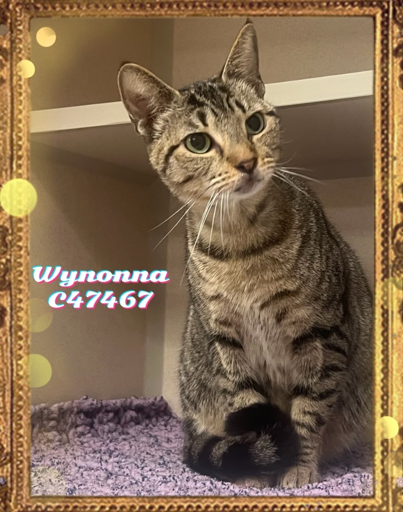Wynonna is an adult female Domestic Shorthair mix. She is fully vetted; litter trained and will be spayed upon adoption. Very sweet girl looking for her forever home. Come see her in the Cat Room.