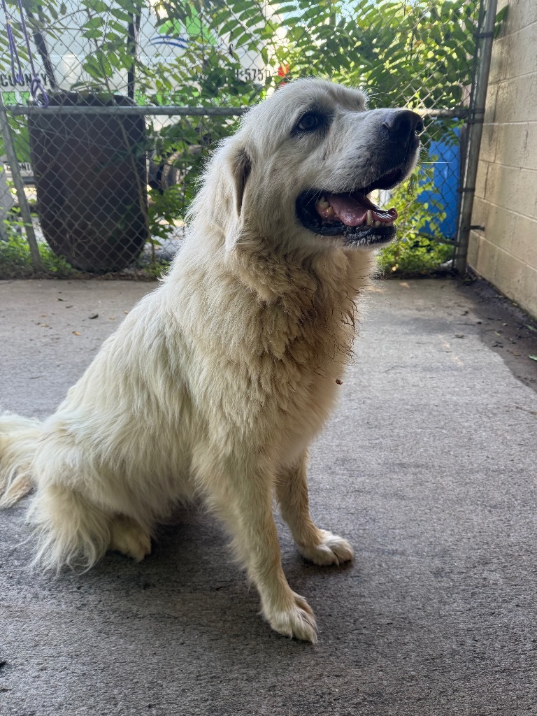 Becka is an adult female Great Pyrenees. She is fully vetted and will be spayed upon her adoption. PLEASE do your research on this breed before adoption as they have certain requirements and needs to be successful, happy members of your family.