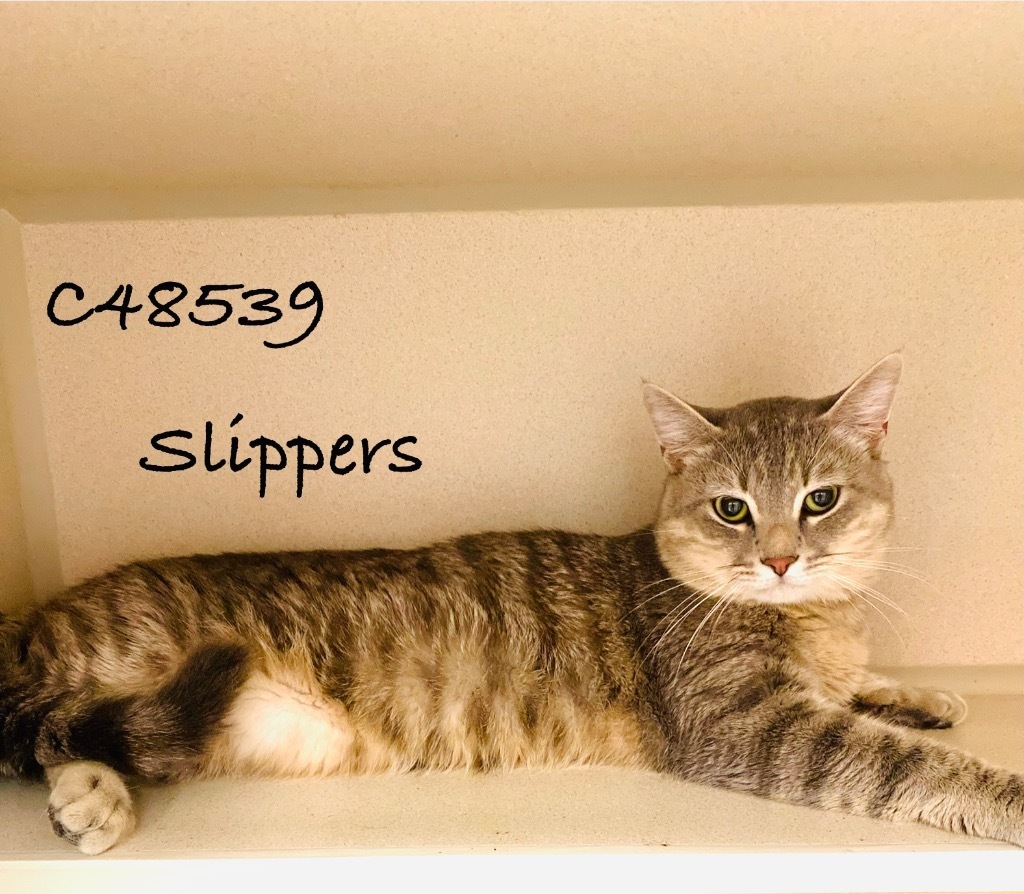 Slippers is a male Domestic Shorthair. He is fully vetted, litter trained and will be neutered upon adoption. Come see him in the Cat Room.