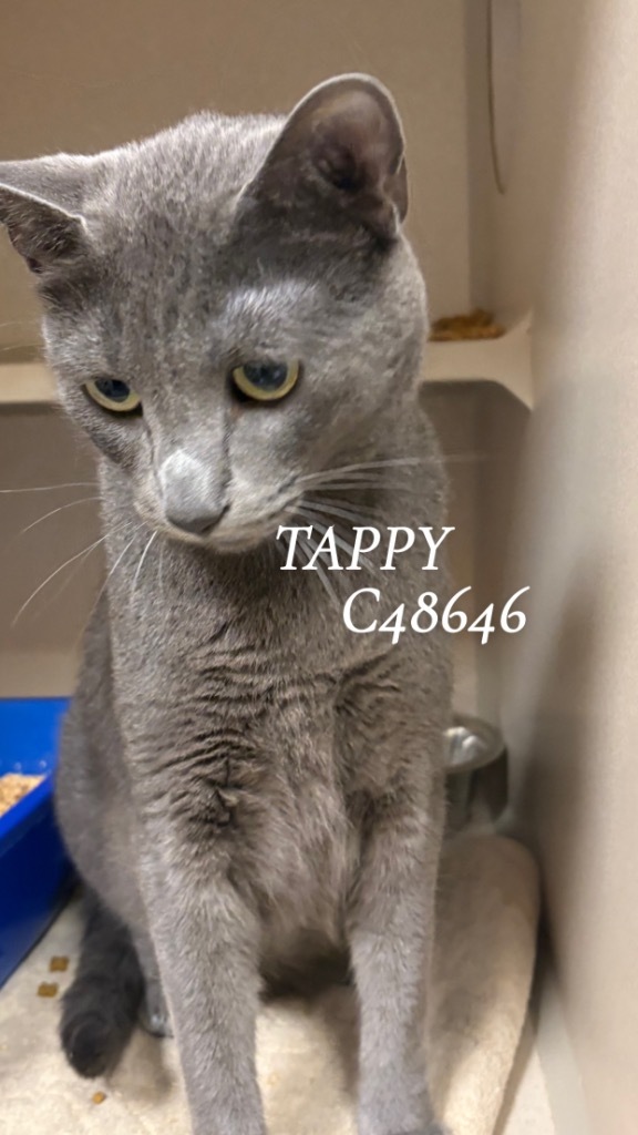 Tappy is a young male Domestic Shorthair. He is fully vetted, neutered and litter trained so he can go home the same day. He can be seen in the Cat Room.