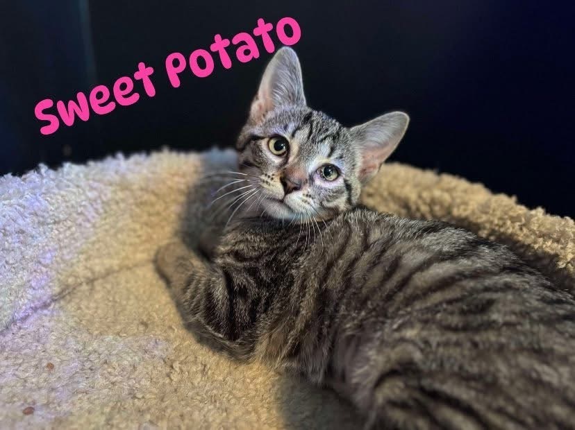 Sweet Potato is a female Domestic Shorthair/Tabby mix. She is fully vetted, spayed and litter trained. She would love a home with another cat buddy and lots of entertaining enrichment toys. Cat trees and climbing objects are her favorite things. She has been around other cats, dogs and children. If you would like an application and more information please message the rescue on FB or https://www.petfinder.com/member/us/tclarksville/finders-keepers-cat-rescue-tn984/ Or email finderskeeperscatrescue@gmail.com * Fosters are always needed!*