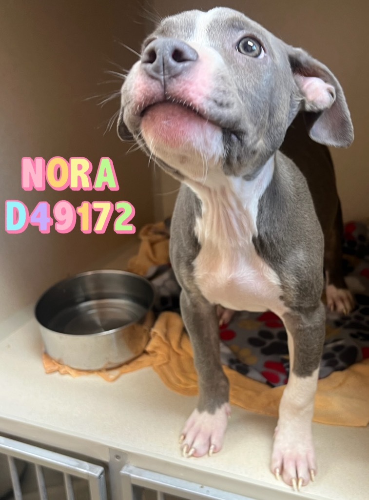 Nora is a female mixed breed puppy. She is fully vetted and will be spayed and microchipped upon adoption. Also, please remember to check ALL breed restrictions and policies if renting or living on Post. Be prepared before adopting. Come visit and take her out in the yard.