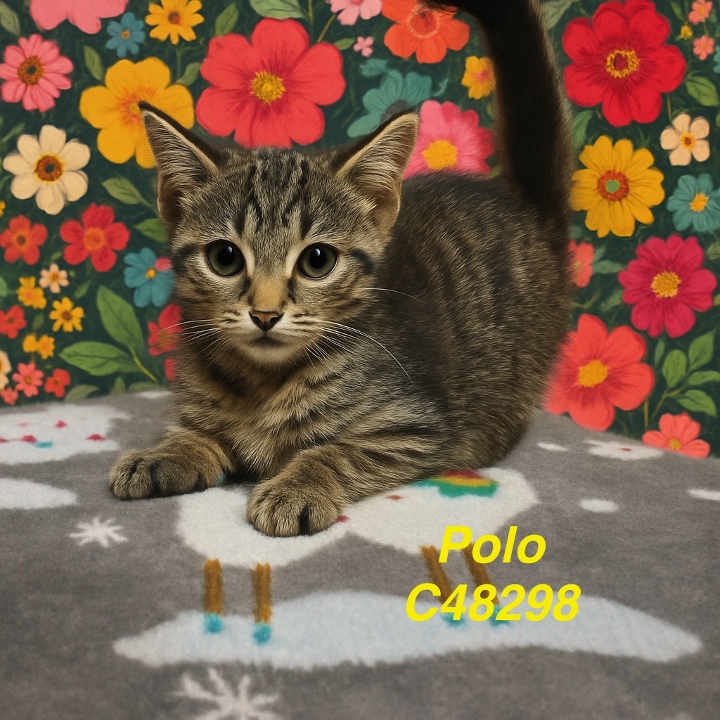 Polo is a young male Domestic Shorthair mix kitten. He is fully vetted, will be neutered and is litter trained. He can be seen in the Cat Room.