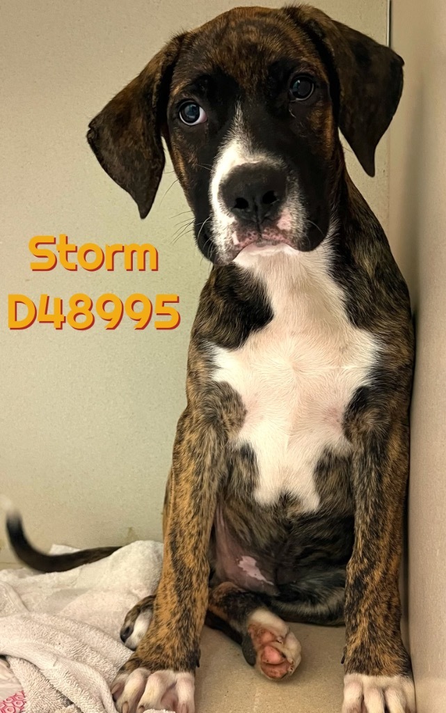 Storm is a male Boxer mix puppy. He is vetted and will be neutered and chipped upon adoption.. Sweet boy looking for his forever home.