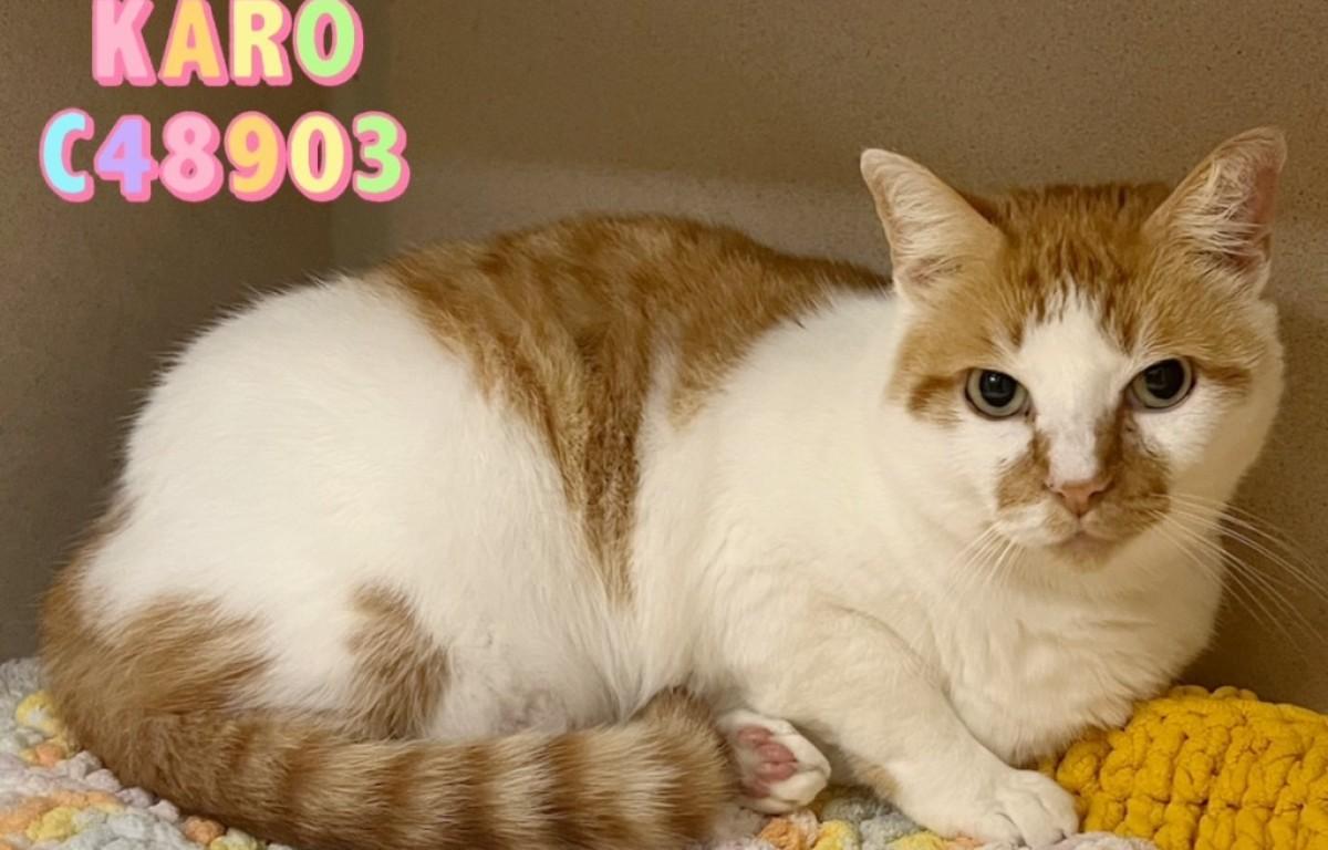 Karo is a male Domestic Shorthair. He is fully vetted, litter trained and already neutered so he can go home the same day. Come see him in the Cat Room.