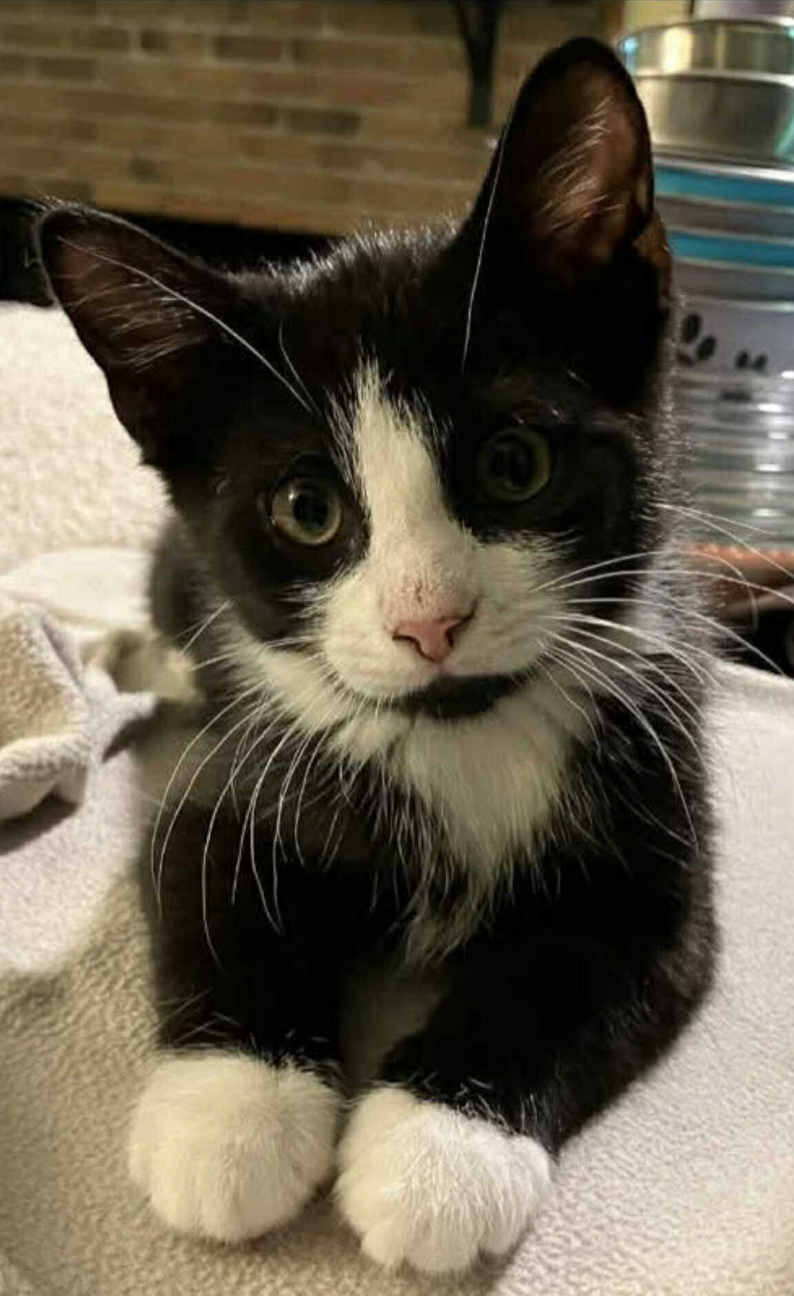 Socks is a super cute 3 month old male domestic shorthair kitten. Fully vetted, dewormed, litter trained, flea treatment and voucher for neutering when 6 months of age. He would be a wonderful companion to a lucky family.*Foster homes are always needed. For more information and application please contact: CATS Contact info: Text Susan @ 931-305-8212 or leave a message through their Facebook page. http://www.facebook.com/CatAdoptionTeamOfStewartCountyCATS.