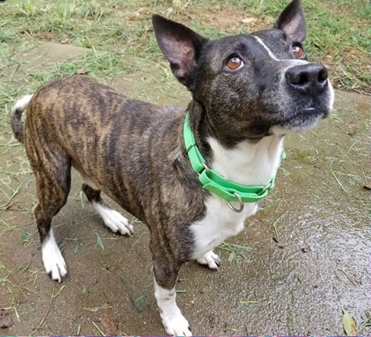 Sampson is a brindle 5-year-old, neutered male mixed breed who was rescued from the local shelter. He has beautiful markings and mesmerizing eyes. Sampson is very loving and playful. He is heartworm positive and his treatment is continued until he is cured. Find him through Companion Pet Rescue of Middle Tennessee, 615-260-8473