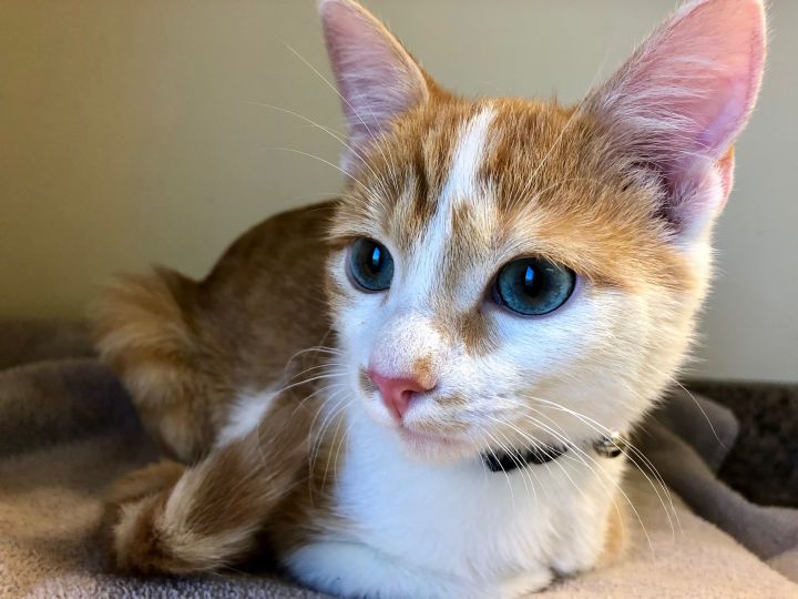 Mufasa is a young, neutered male domestic shorthair with stunning blue eyes. He is litter box trained and may do best in a home without dogs. Mufasa came with a deformed back leg. After two months of physical therapy involving daily stretching techniques, he is building muscle and using his leg again. He will need a home that will be diligent about continuing his daily therapy. Find him through the Humane Society of Clarksville-Montgomery County, 931-648-8042