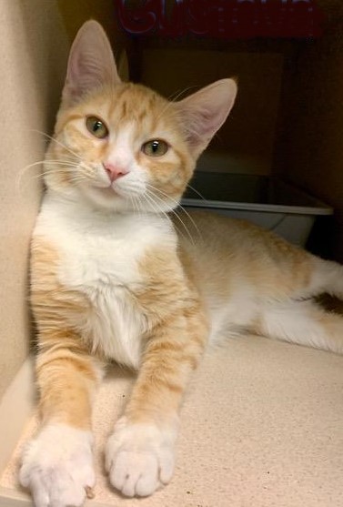 Gustova is an adorable female domestic shorthair kitten with beautiful markings and pretty green eyes. She is very curious and loves to explore her surroundings.