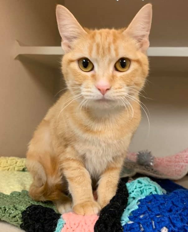 Peaches is a young female domestic shorthair with beautiful markings and mesmerizing amber eyes. She is very friendly and affectionate and loves people. Peaches would make a wonderful companion. e is He