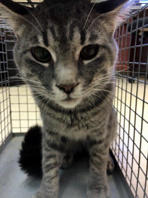 Happy is an adult, neutered male domestic short hair with a beautiful striped coat. This handsome boy loves people would make a great family addition.