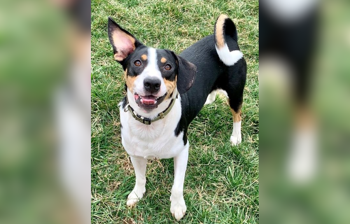 Rex is a 2-year-old, 47-pound male Australian shepherd/hound mix. This handsome energetic boy is house trained and neutered. Rex is a friendly boy who gets along well with other dogs and children. He is smart and obeys several commands. Rex would love a home where he gets walks and playtime. He loves people and thinks he is a lap dog.