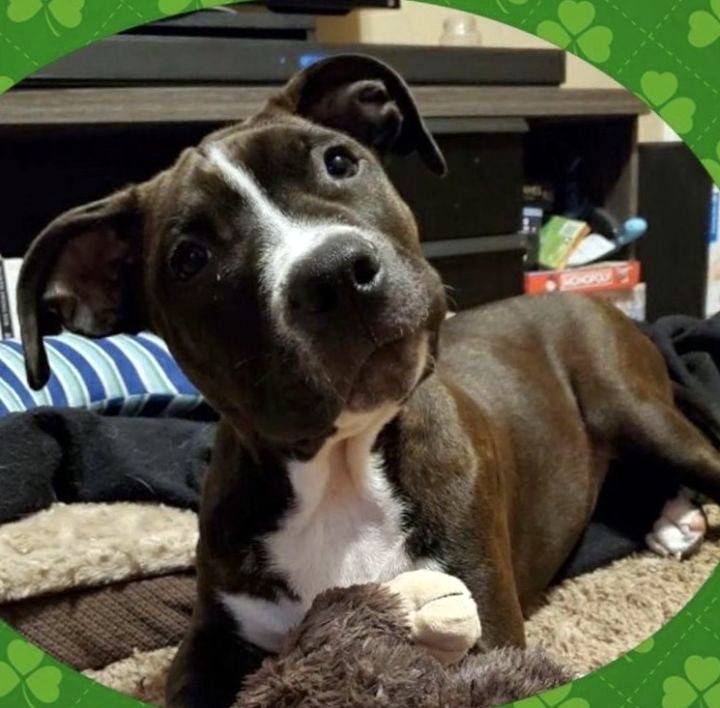 Squirt is a 3-month-old male pit bull terrier mix. This puppy enjoys playing with other puppies and dogs. He is doing great with his house training and knows how to use a doggie door. Squirt gets along well with children.