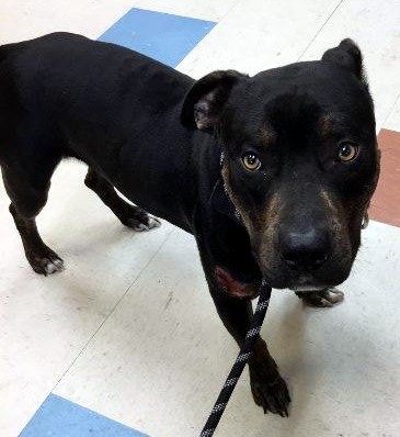 Javier is a handsome young, neutered male rottweiler/American Staffordshire terrier mix. He is a very happy boy who just wants to spend time next to you. Javier is currently recovering from an injury to his front shoulder area but this does not slow him down.