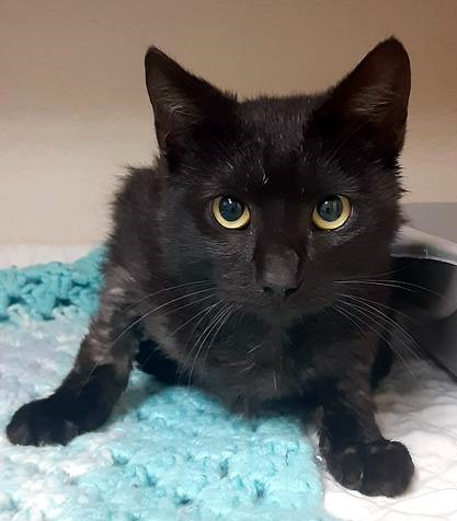 Midnite is a young, spayed female domestic short hair with a beautiful soft coat. She is a shy girl who is somewhat skeptical of people at first. Midnite will be a great lap cat once she gets to know you.