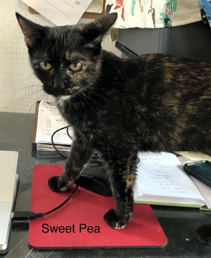 Sweet Pea is a 6-month-old, spayed female tortoiseshell. She is fully vetted and litter box trained. Sweet Pea is a loving cat who likes to talk and share her thoughts with you. She gets along well with other cats and would make a great companion. Find her through the Humane Society of Dover-Stewart County, 931-305-8212