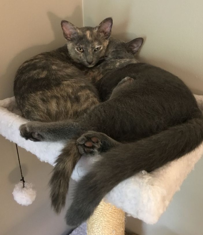 Jax is a 2-year-old, spayed female domestic short hair. She and her sister Jiyuana are a bonded pair and must be adopted together. They are house trained and have always been indoors. They are nervous around dogs and young children. Jax and Jiyuana are very loving and sweet girls. They are very playful and love snuggling together.