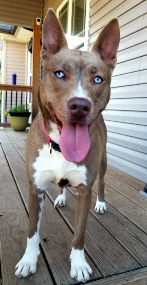 Feather is a beautiful 2-3-year-old fawn/brindle female pit bull terrier. She is fully vetted and house trained and gets along great with children. Feather needs to be the only dog in the home.