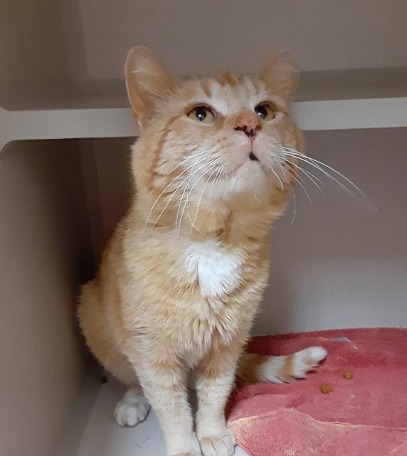 Jelico is an 11-year-old neutered male orange tabby. This handsome boy weighs about 14 pounds. He is house trained and has been neutered. It might take Jelico a little while to adjust to a new owner as he is a little shy. His ideal home would be as an only pet with an older adult to whom he could devote himself.
