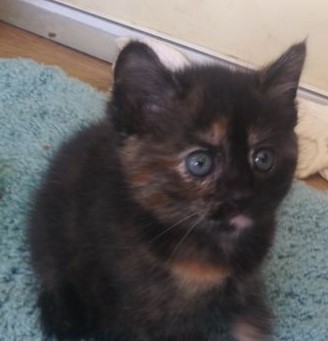 Precious is a sweet 3-month-old tortoiseshell female kitten. She is spayed and house trained. Precious is so young that she has not spent any time around children or dogs yet, but she may do fine given a careful introduction. She seems to enjoy other cats.