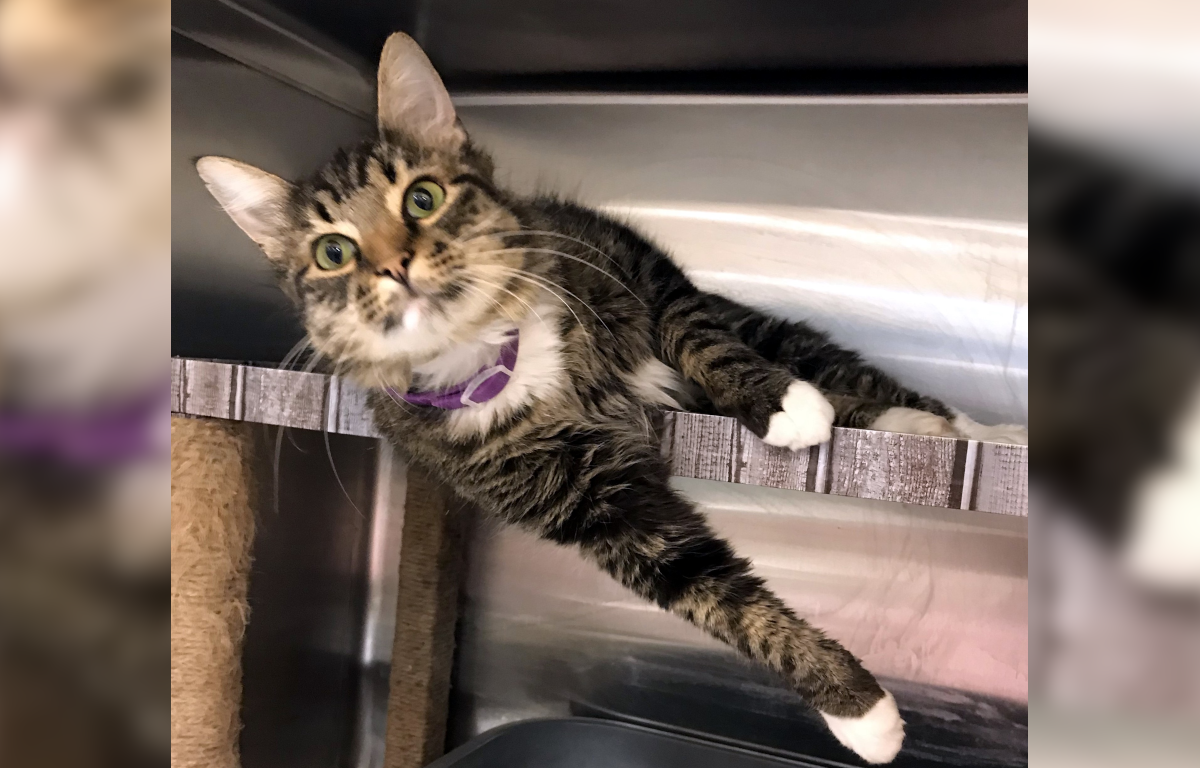 Ollie is a 1-year-old male tabby with handsome white markings. He is a friendly fellow who likes people and dogs. He is playful and bright, and loves to be petted. Ollie is neutered, vetted, and litter trained.