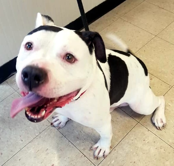Shemp is a 5-year-old neutered male American Staffordshire terrier whose owner passed away. He graduated from socialization and obedience training, is fully vetted and house trained. This handsome boy loves people and would make an excellent companion.