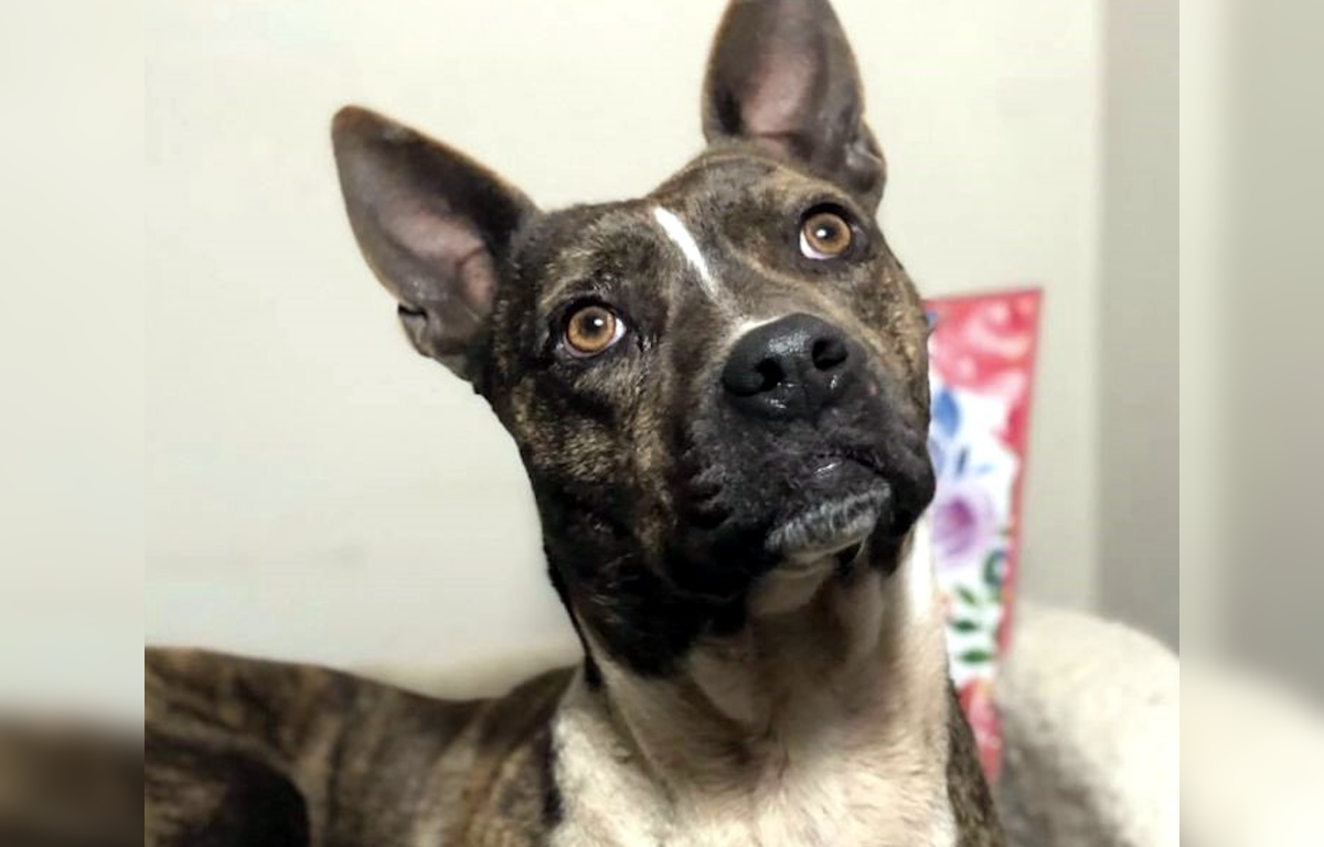 Shaggy is a 3-year-old, 40-pound spayed female pit bull terrier mix with a beautiful brindle coat. She is fully vetted and house trained. Shaggy loves people and gets along well with other dogs, but is aggressive with her food and toys. This sweet girl would make a wonderful companion.