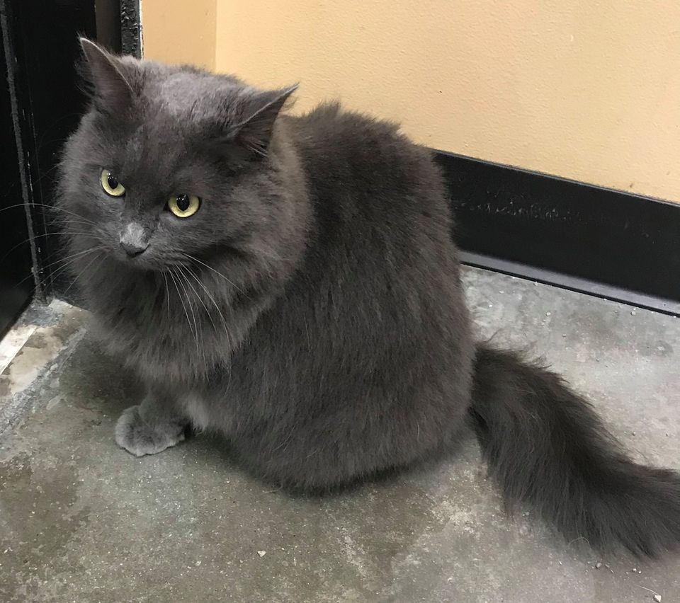 Elaine is a 2-year-old female tripod kitty. Her front left leg was amputated before she came to the rescue. Her legs are short, and she is longhaired, she makes an endearing picture as she gets about. Her blue-gray fur is gorgeous. Elaine is very timid around other cats. She loves people and loves to snuggle. She will do best in a household where she is somewhat protected and catered to. She is vetted, spayed, and litter trained.