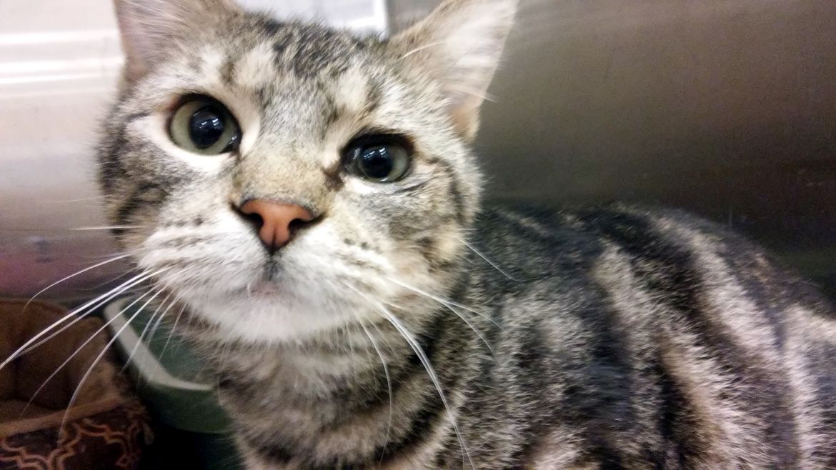 Livy is a 3-year-old, neutered male brown/bobcat style tabby. He is fully vetted and house trained. Livy and his sister Gracie were born to a feral cat but have become very social. Livy is skittish, but loves being scratched. He would do best in a quiet home and with someone who is patient and experienced. Find him through the Humane Society of Clarksville-Montgomery County, 931-648-8042