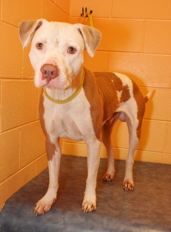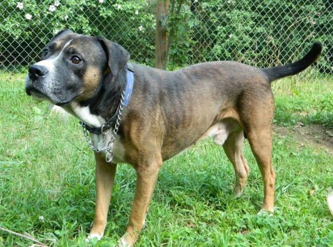 Duke is an 8-10-year-old, neutered male boxer mix. He is house, crate, and lead trained. Duke loves laying on the couch and just chilling with his human. He prefers a quiet home with older children. Duke will need to be an inside/outside dog. He barks when the doorbell rings and would make a great protection dog. Find him through Stewart County Faithful Friends Animal Rescue, 931-627-1459