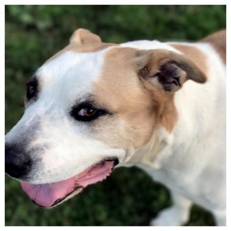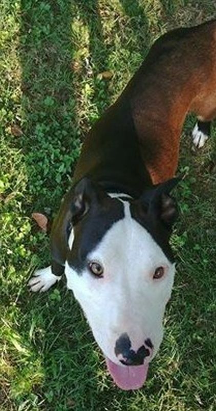 Mongo is an adult, neutered male pit bull terrier mix. He spent his entire live on a chain in a back yard. Mongo is fully vetted, house and crate trained, and knows basic commands. He needs a home without cats. Mongo is a sweet and gentle giant who loves attention. Find him through Two Ladies Caring Dog Rescue, 931-217-1587