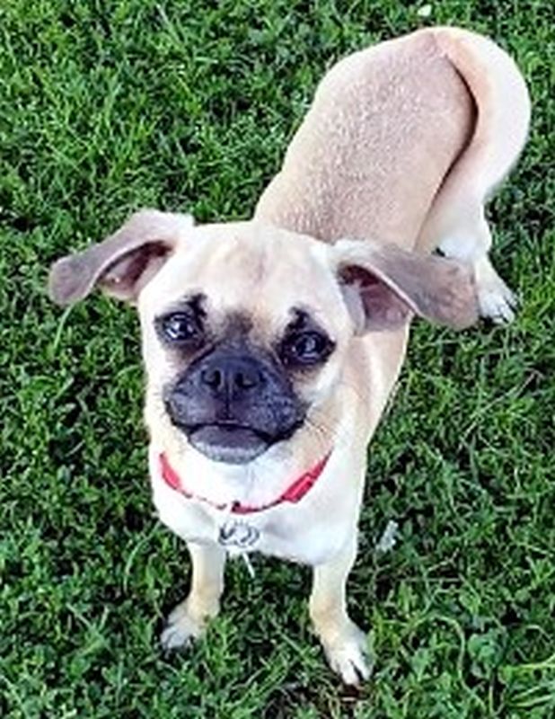 Molly is a 6-month-old female pug/chihuahua mix. She gets along well with other animals. Molly is a little shy at first but quickly warms up to people. She is very playful and affectionate and is a perfect little lap dog. Find her through Precious Friends Puppy Rescue and Adoption, 931-551-4407