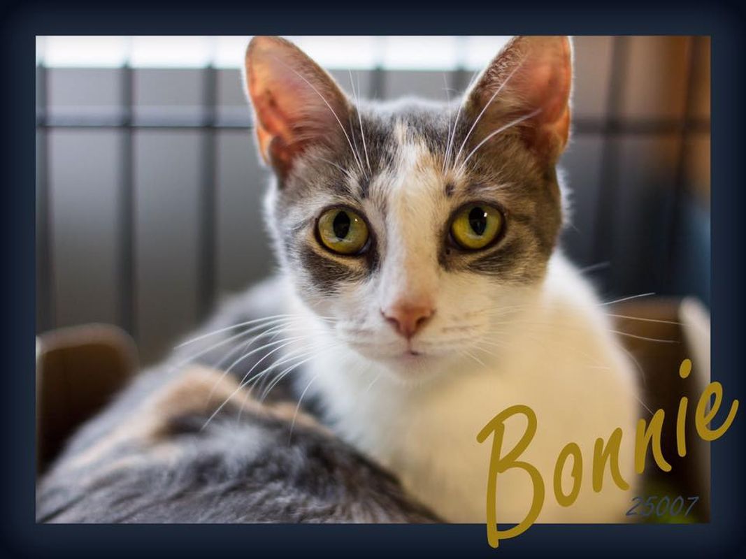 Bonnie is a young female domestic short hair. She is litter-box trained and gets along great with other cats and dogs. Bonnie is very loving and affectionate.