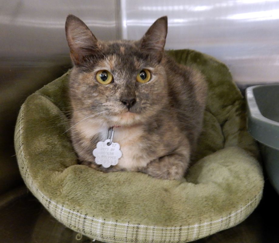 Rhonda is a young, spayed female domestic short hair with stunning green eyes. She is very affectionate and loves people. The $25 adoption fee will be waived for cats during the month of June.