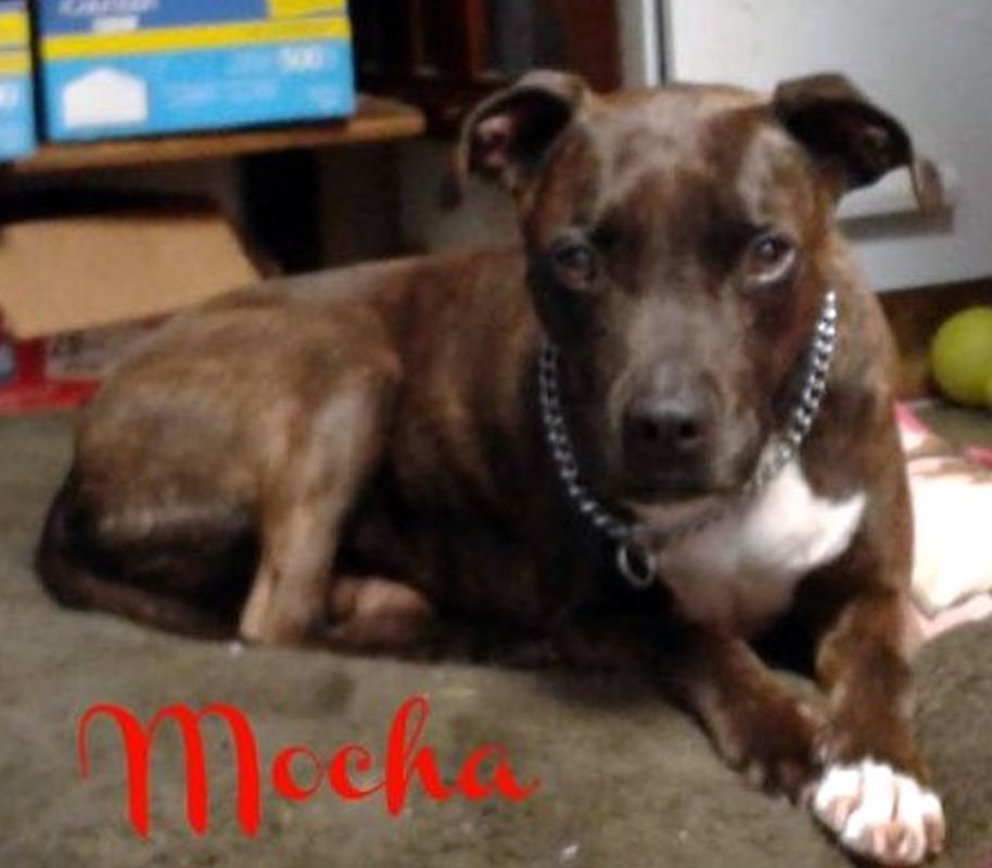 Mocha is a 3-year old spayed female pit bull terrier. She is crate trained and knows basic commands. Mocha is very affectionate and just wants to chill with you. She hates to be alone and needs a home with another dog and where the owner is present most of the time. Mocha needs to be an inside pet and a fenced yard is a plus. Find her through Stewart County Faithful Friends Animal Rescue, 931-627-1459