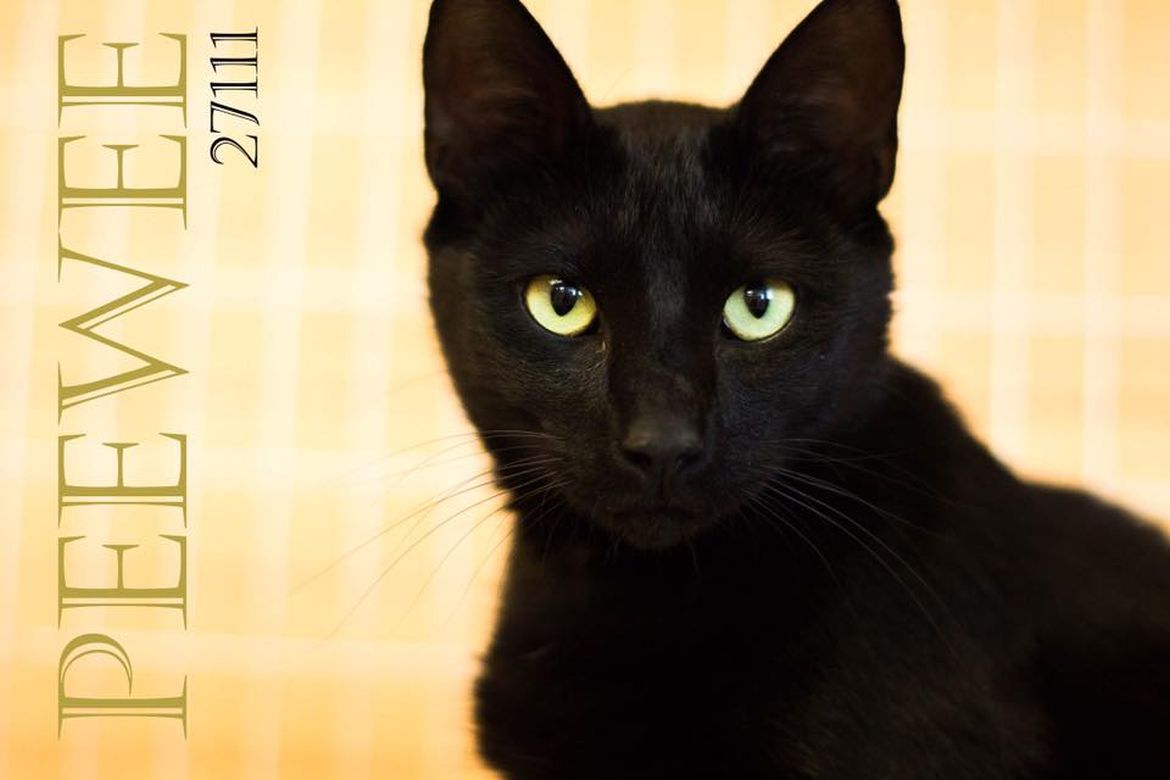 Peewee is a young male domestic short hair with a stunning black coat and beautiful green eyes. He loves attention and loves to be with people.