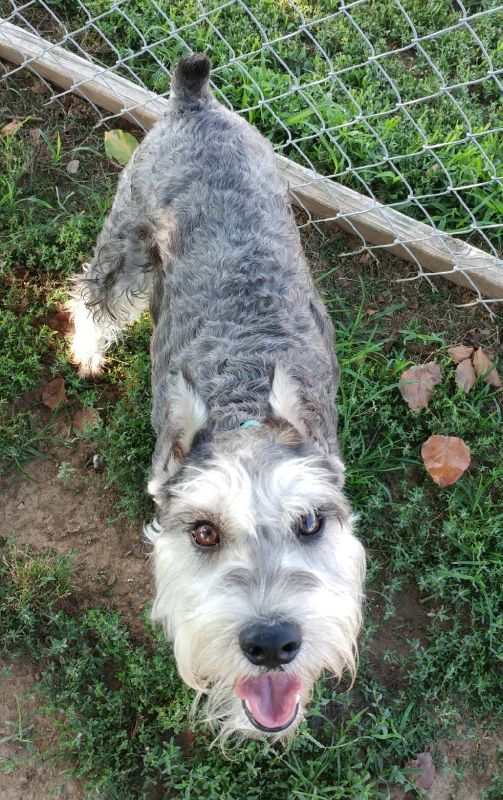 Rico is a 1-year-old, neutered male schnauzer. He gets along well with other dogs and is very well behaved. Rico knows basic commands, is very playful, and loves to fetch a ball. Find him through Precious Friends Puppy Rescue and Adoption, 931-551-4407