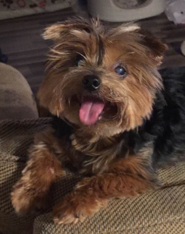 Rusty is a 9-year-old male Yorkshire terrier. He is fully vetted, house-trained, and walks well on a leash. Rusty is the sweetest little guy. He loves to cuddle and loves car rides. He is a very happy boy and wants to be with you all the time. Rusty has cataract in his right eye and eats special food due to food allergies. Find him through United Yorkie Rescue, 615-498-8043