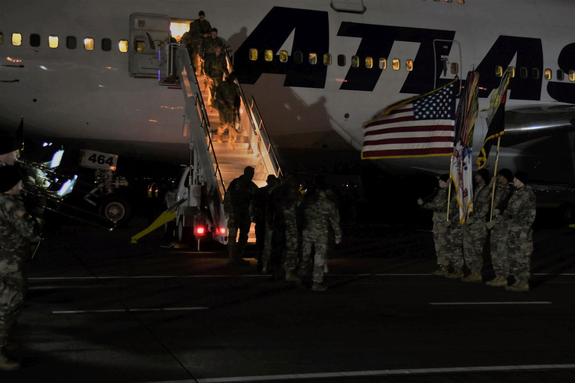 FORT CAMPBELL, KY. – (CLARKSVILLENOW) Early Thursday morning a flight touched down at Fort Campbell carrying 173 soldiers with the 101st Combat Aviation Brigade (CAB) back from their nine-month deployment to Afghanistan.