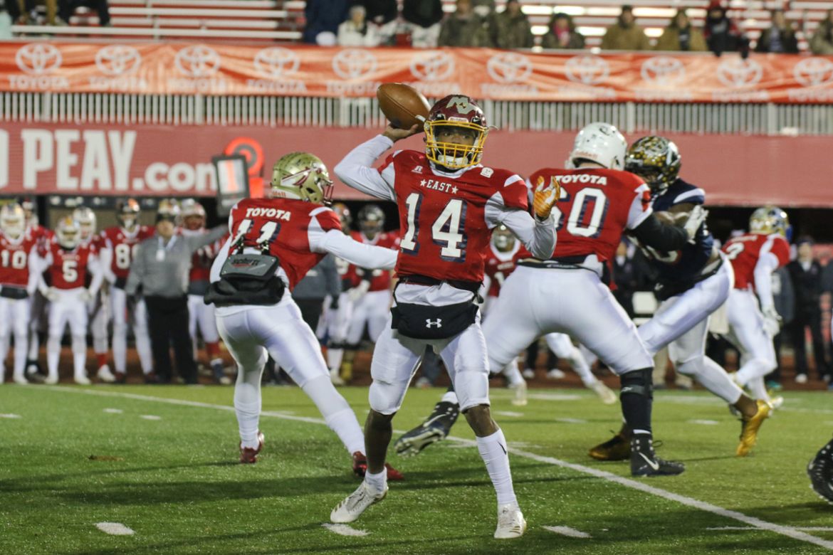 CLARKSVILLE, Tenn. – (ESPN CLARKSVILLE) The 11th Annual 2017 Toyota East-West Football All-Star Classic game was played at Fortera stadium, Friday night. The Tennessee Athletic Coaches Association selects high school players from all over the state for the teams.