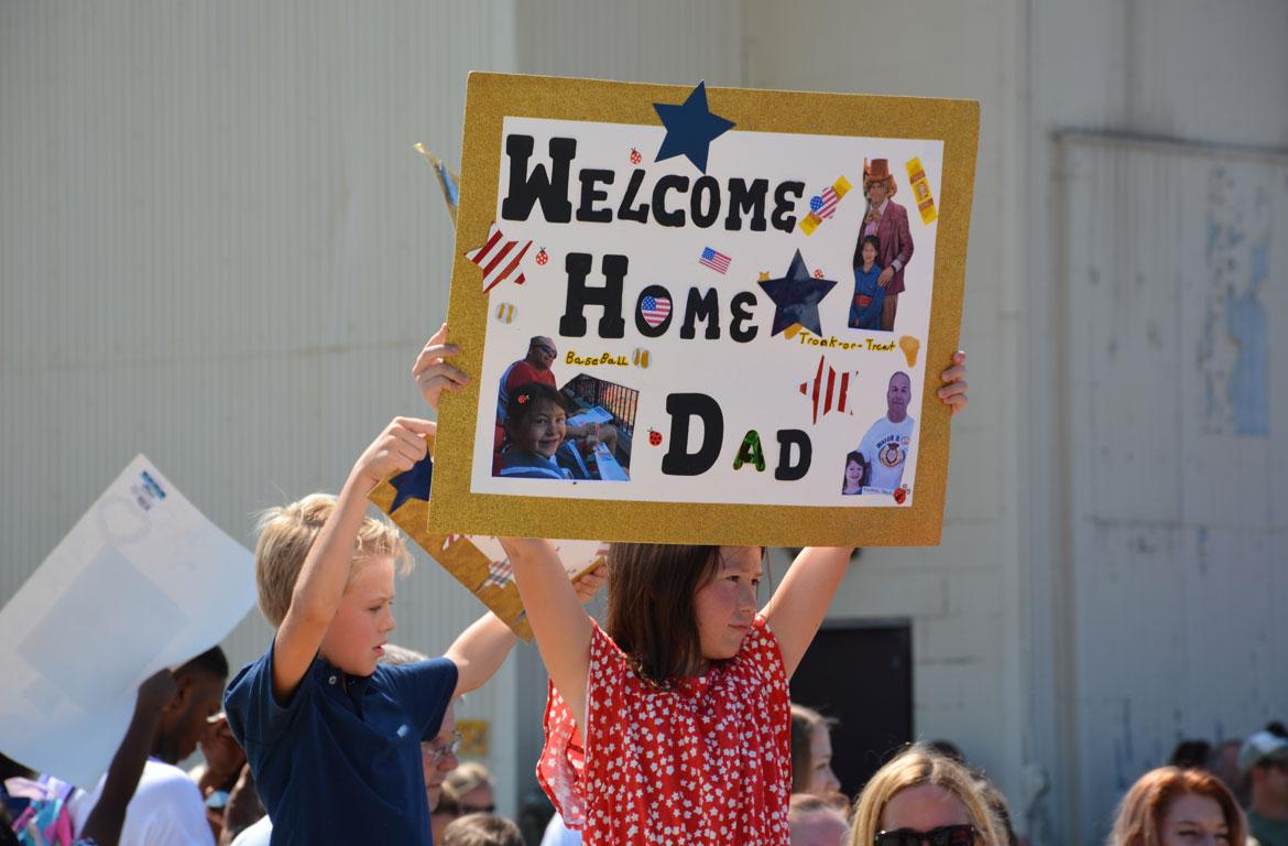 Fort Campbell, KY. (CLARKSVILLENOW) – It was hot day at Campbell Army Airfield as 276 soldiers returned home Wednesday from their nine-month deployment. The heat was no match for the cheers, applause, and shouts of welcome as the soldiers stepped off the plane, fell into formation, and walked into the hangar for a brief ceremony followed by time spent family and friends.