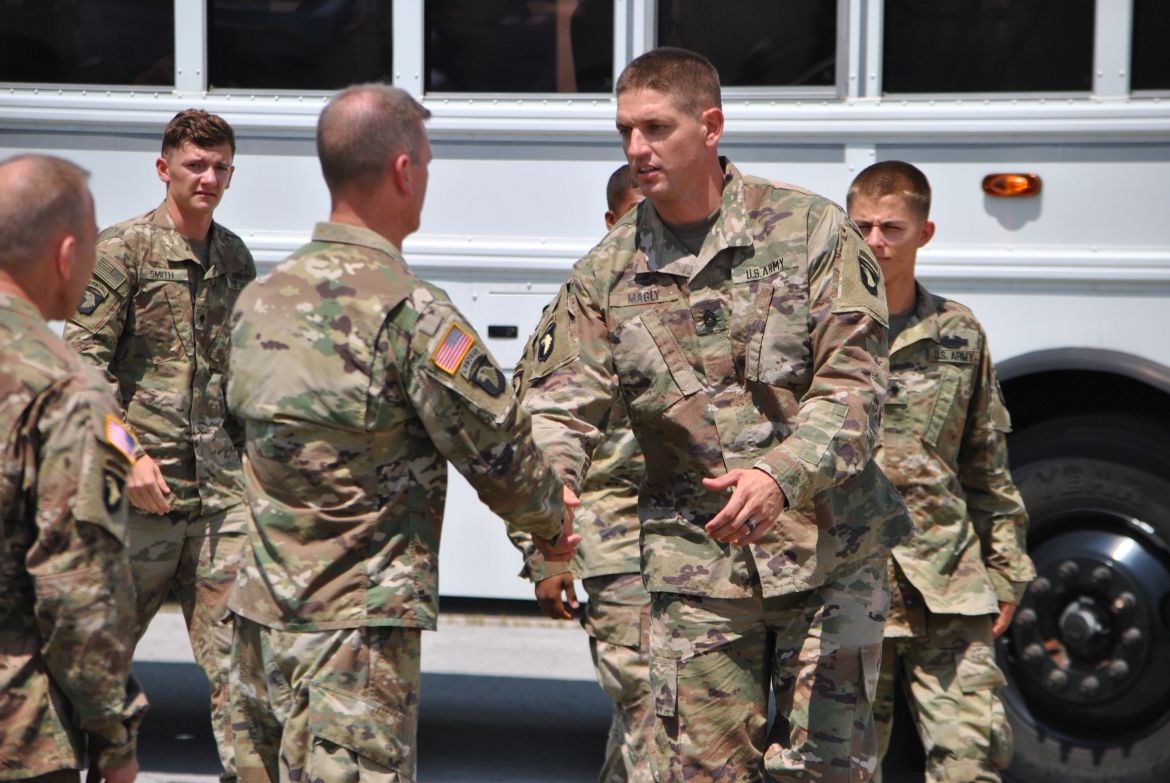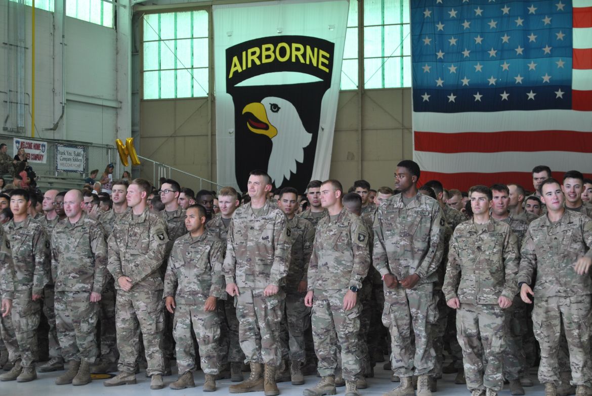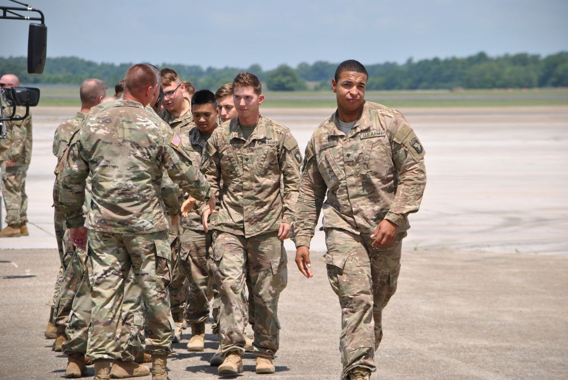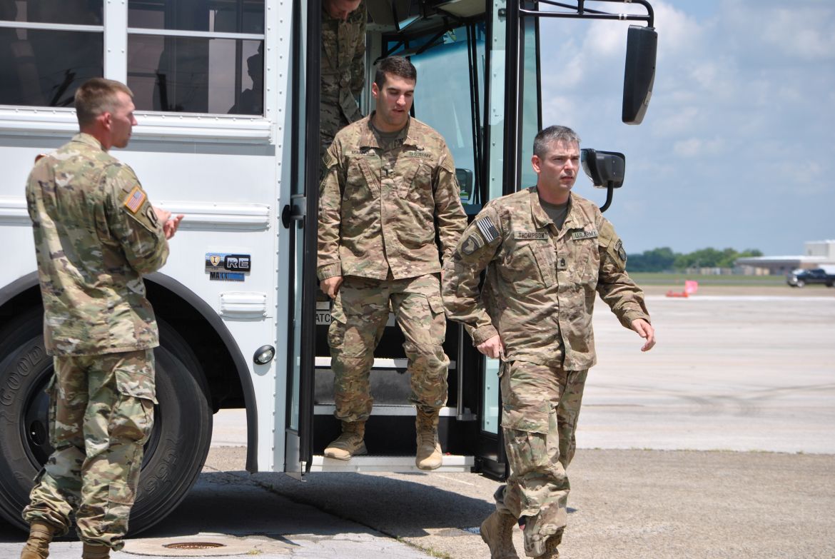 Fort Campbell, KY. – (CLARKSVILLENOW) The 3rd Brigade Combat Team along with soldiers family and friends welcomed home 292 “Rakkasans” Thursday upon their return to Fort Campbell from a nine-month deployment to Afghanistan. With construction work taking place at Campbell Army Airfield, the soldiers flew into Nashville earlier in the day and traveled by bus to Fort Campbell.