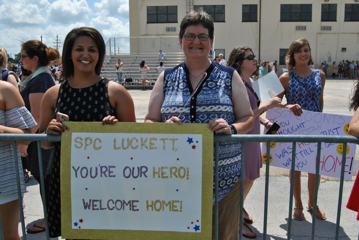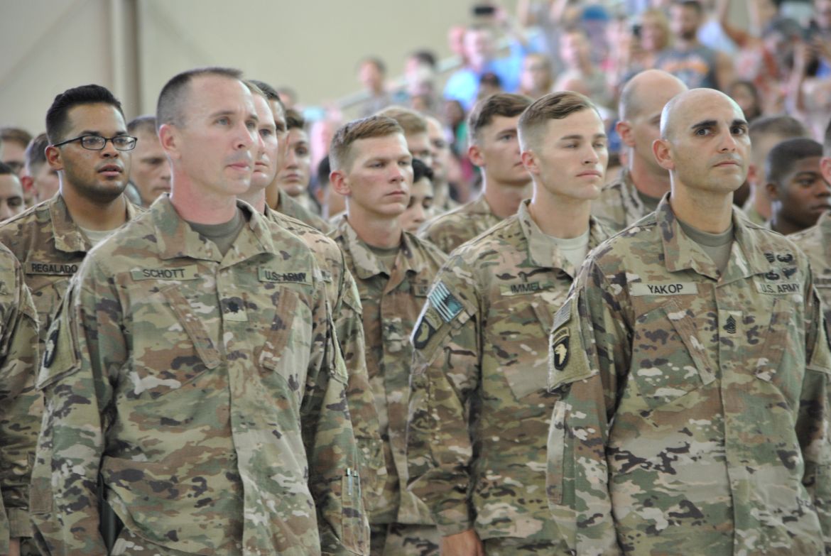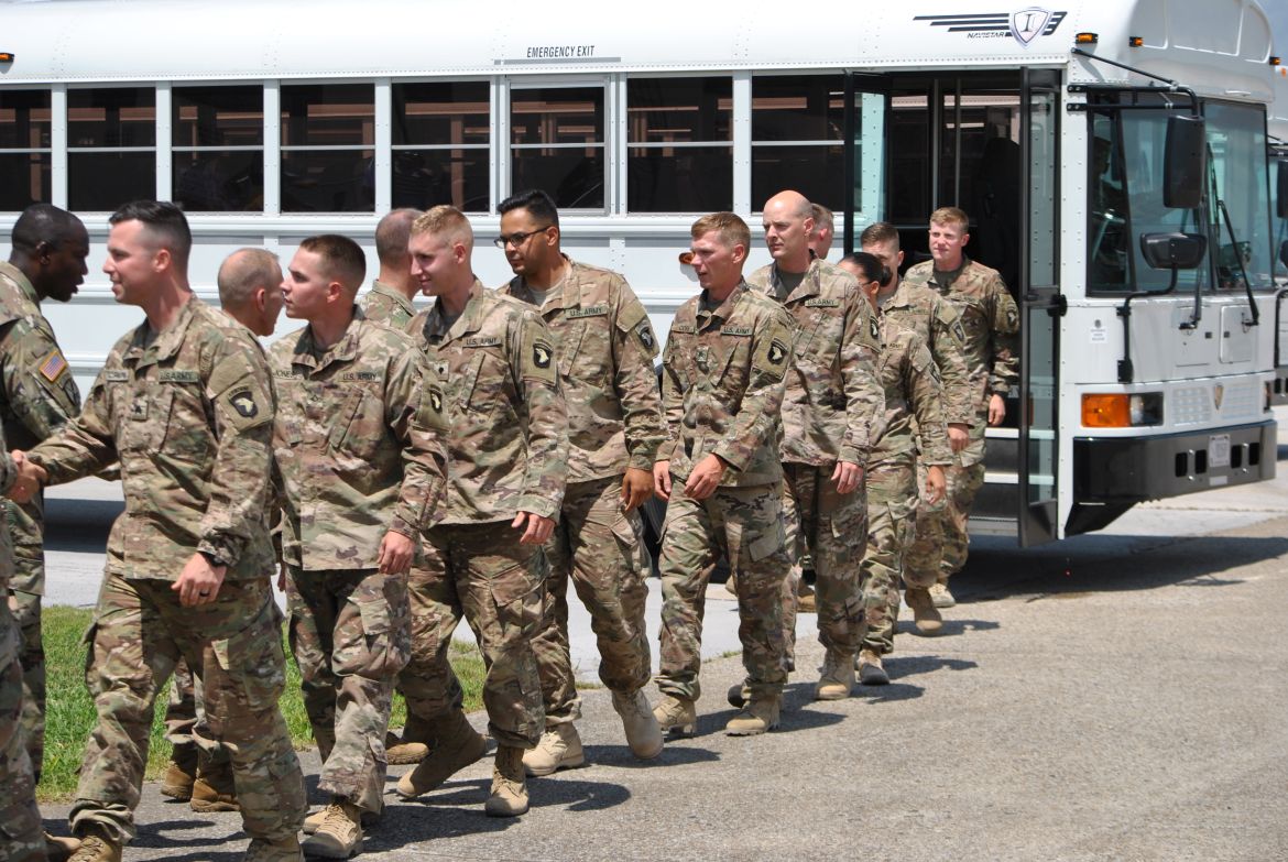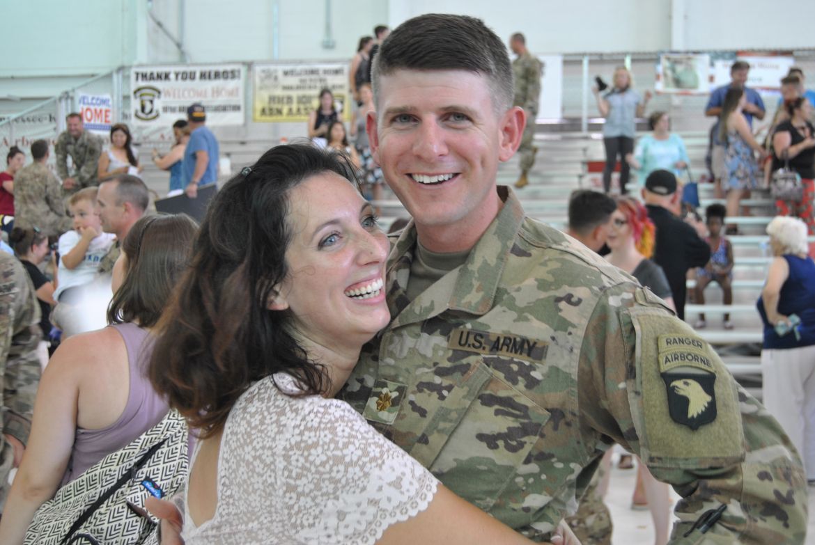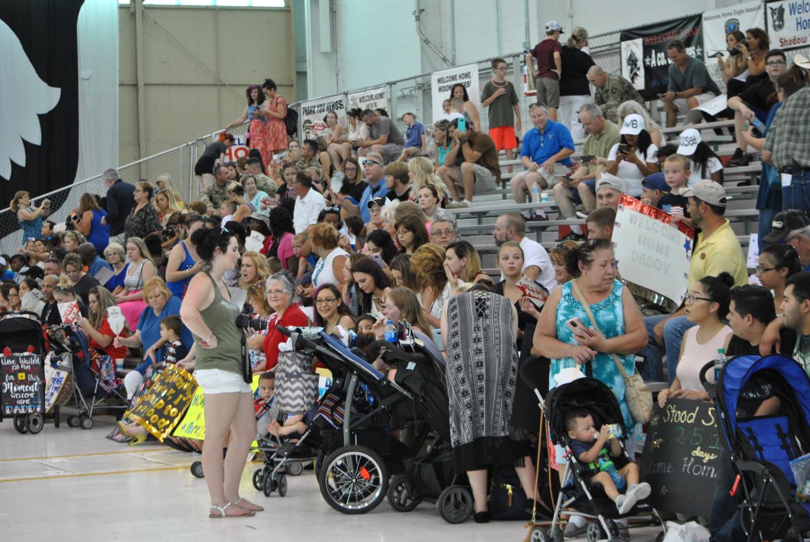 Fort Campbell, KY. – (CLARKSVILLENOW) The 3rd Brigade Combat Team along with soldiers family and friends welcomed home 292 “Rakkasans” Thursday upon their return to Fort Campbell from a nine-month deployment to Afghanistan. With construction work taking place at Campbell Army Airfield, the soldiers flew into Nashville earlier in the day and traveled by bus to Fort Campbell.