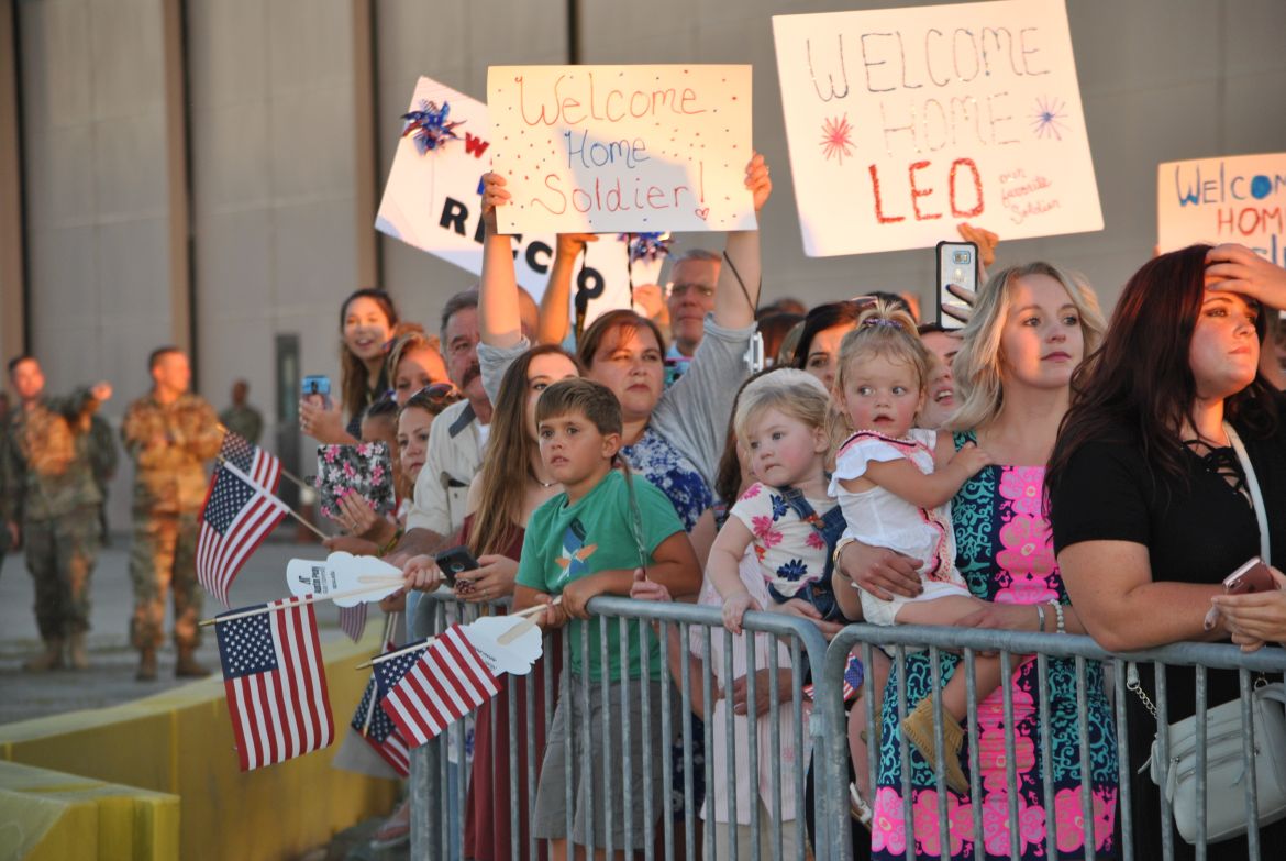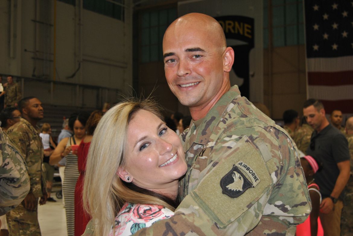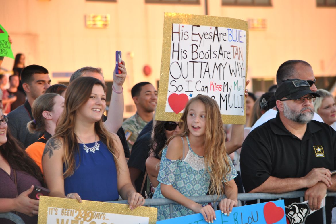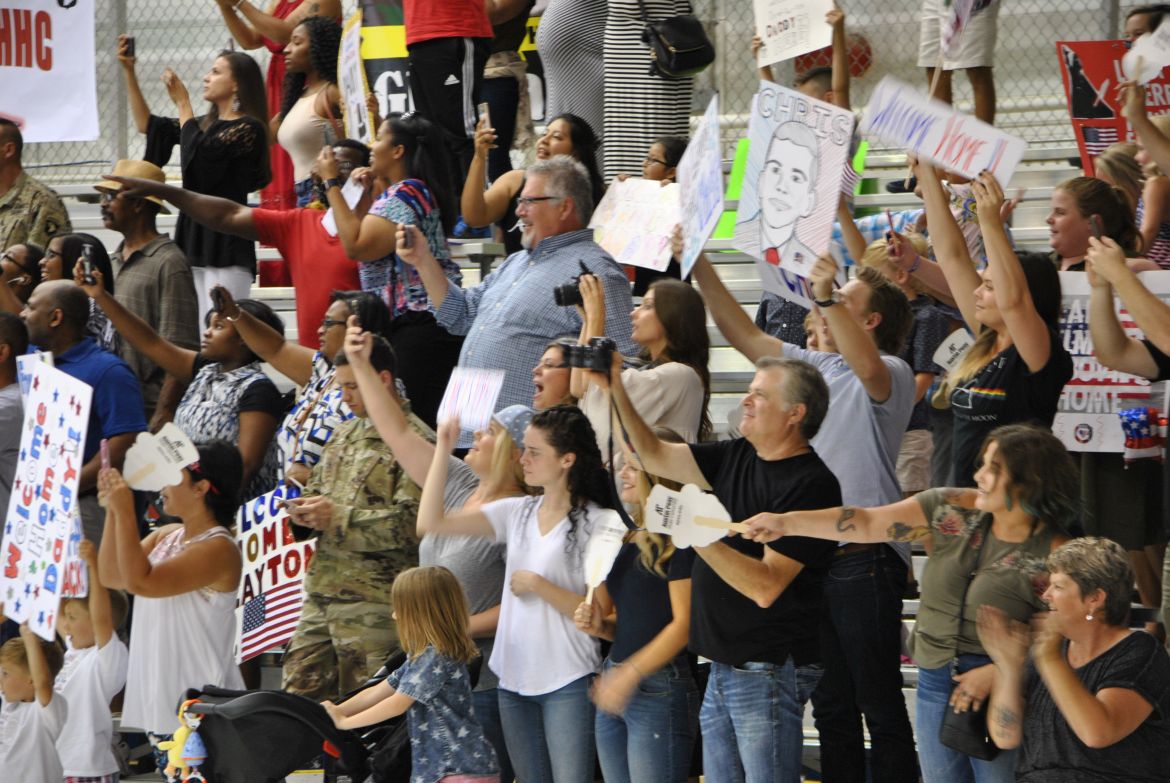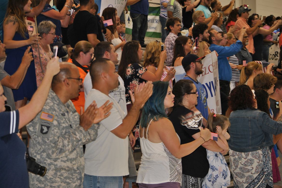 Major General Andrew Poppas, Commanding General of the 101st Airborne Division and Fort Campbell greeted each soldier after they stepped off the bus and at the ceremony talked about the Rakkasans. “Let me tell you about these heroes standing before you today. In the most arduous conditions, the most contentious of fights, that’s when the nation calls on the Rakkasans to take the fight to the enemy. Welcome home,” said Poppas.