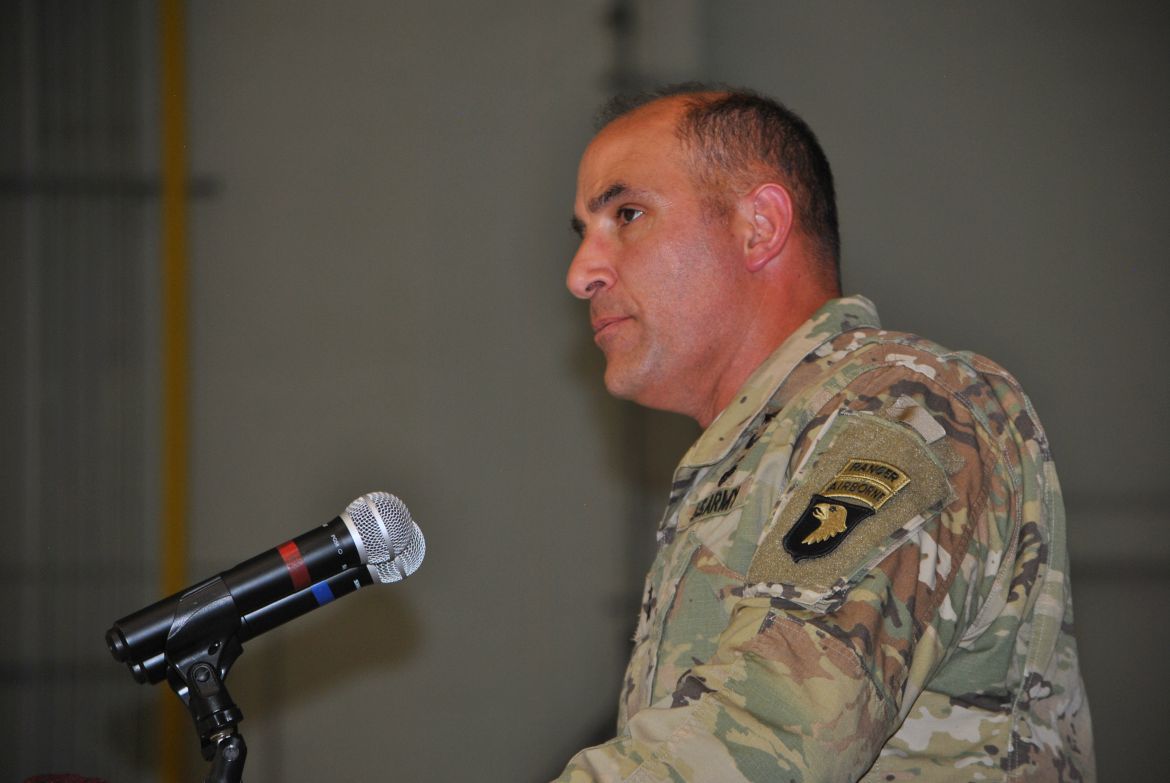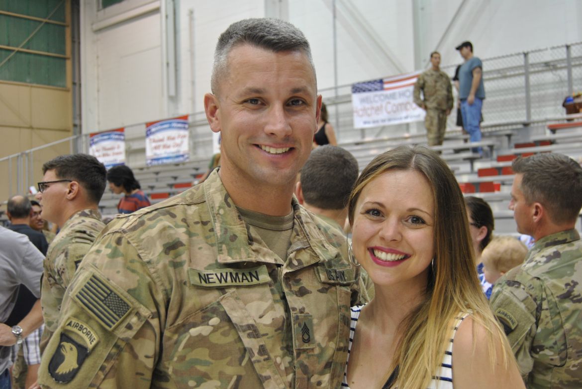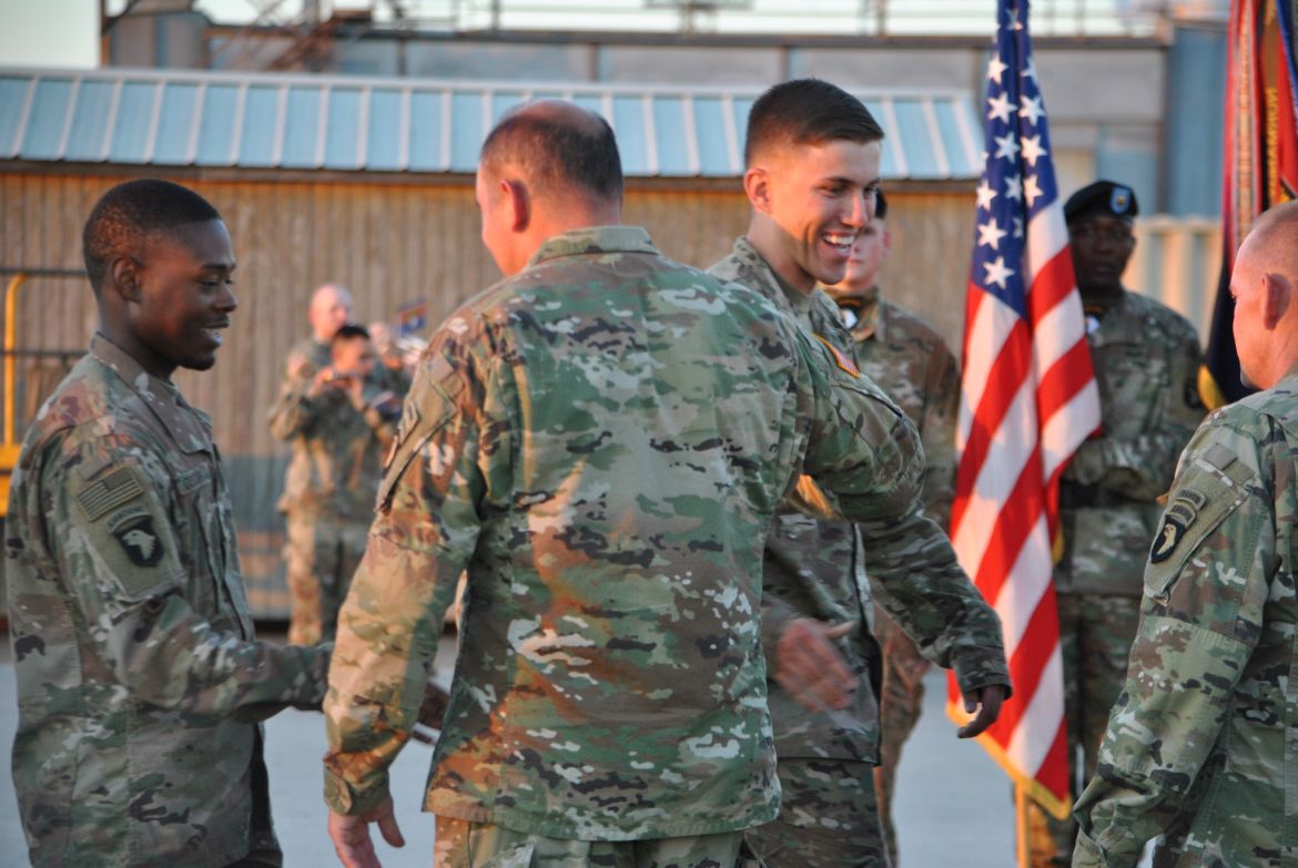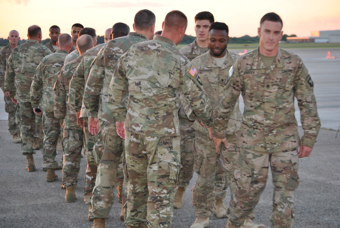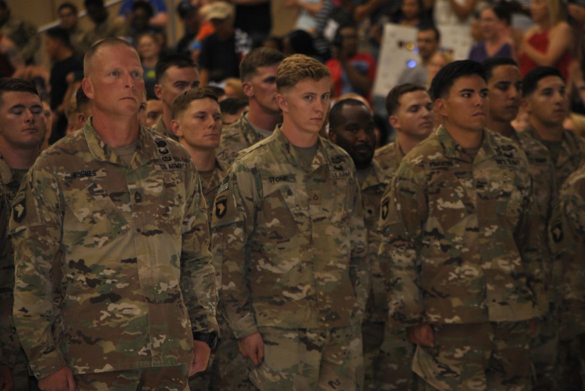 Major General Andrew Poppas, Commanding General of the 101st Airborne Division and Fort Campbell greeted each soldier after they stepped off the bus and at the ceremony talked about the Rakkasans. “Let me tell you about these heroes standing before you today. In the most arduous conditions, the most contentious of fights, that’s when the nation calls on the Rakkasans to take the fight to the enemy. Welcome home,” said Poppas.