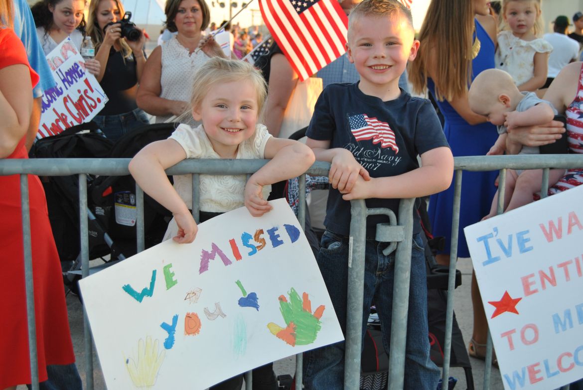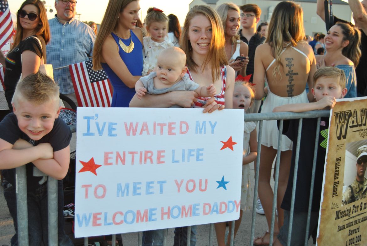Captain Adam Distel held his wife and two young daughters close and had this to say about being home. “It feels awesome, I haven’t seen the wife and kids for nine months, just coming back and seeing how much they’ve grown is awesome,” said Distel. His wife Courtney echoed her husband’s feelings. “It feels amazing, we’ve been looking forward to this since the moment he left. It’s great that he gets to see the girls again and great to have him back home with us.” Distel said.