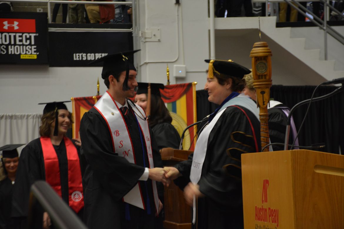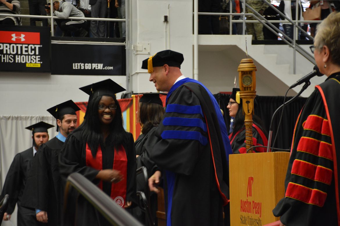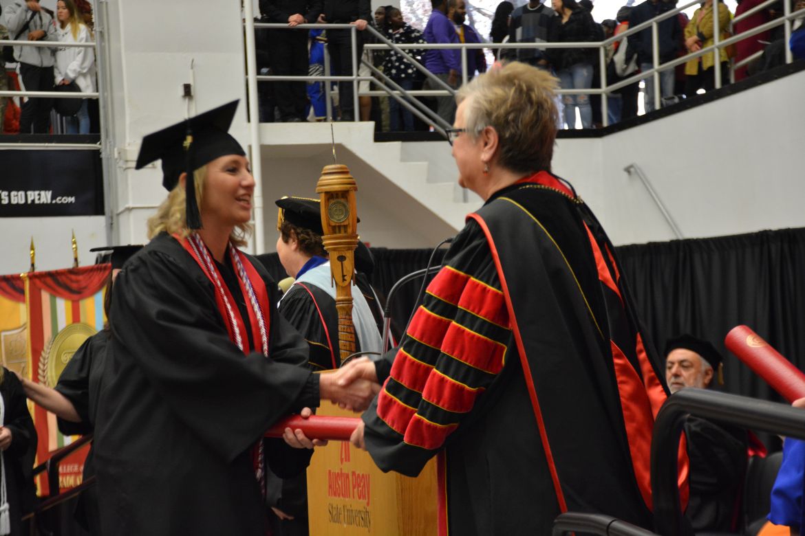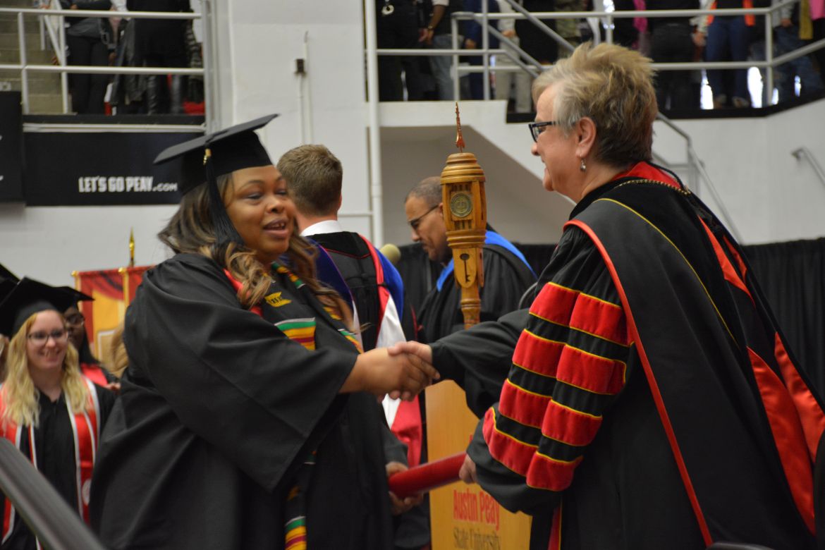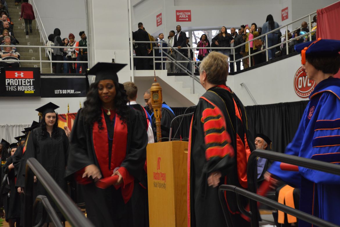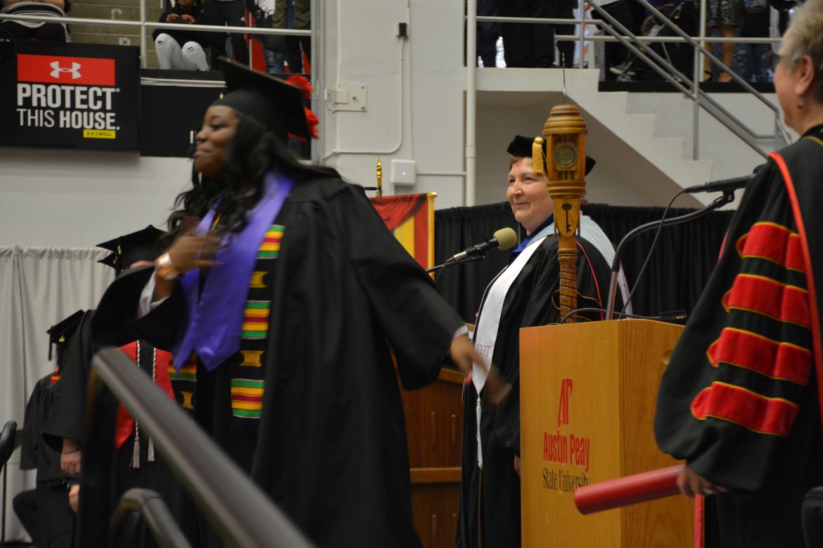 CLARKSVILLE, Tenn. (CLARKSVILLENOW) – Dr. Doris Davenport, Austin Peay State University professor of nursing and recipient of the 2018 National Alumni Association Distinguished Professor Award, delivered the keynote address during the Universityās winter commencement on Friday, Dec. 14.