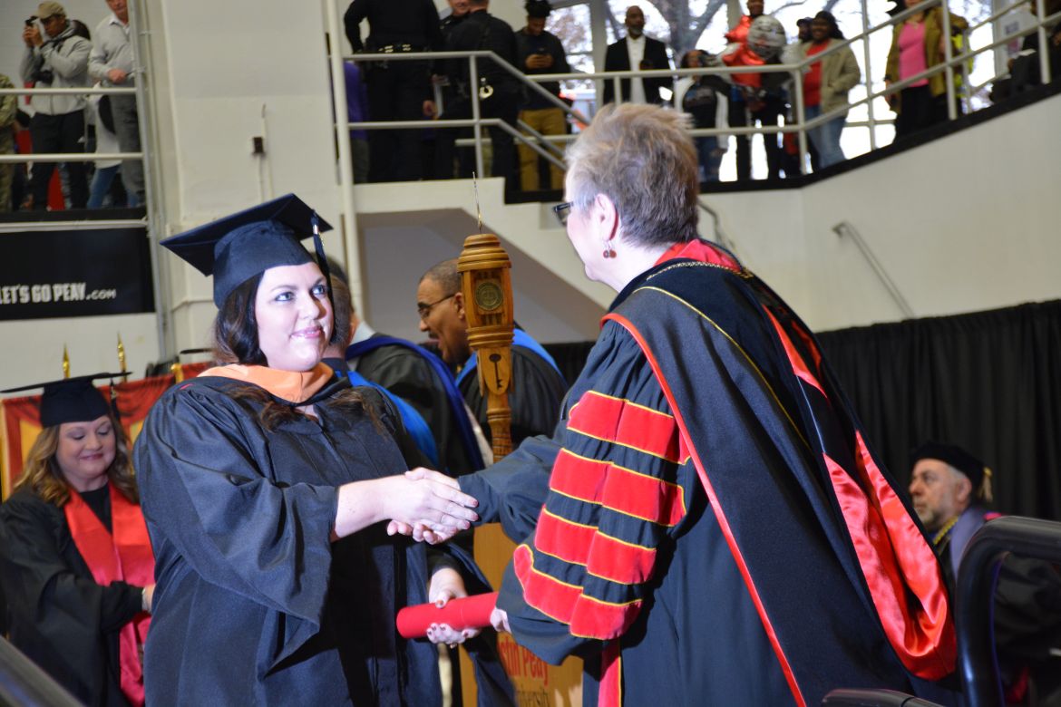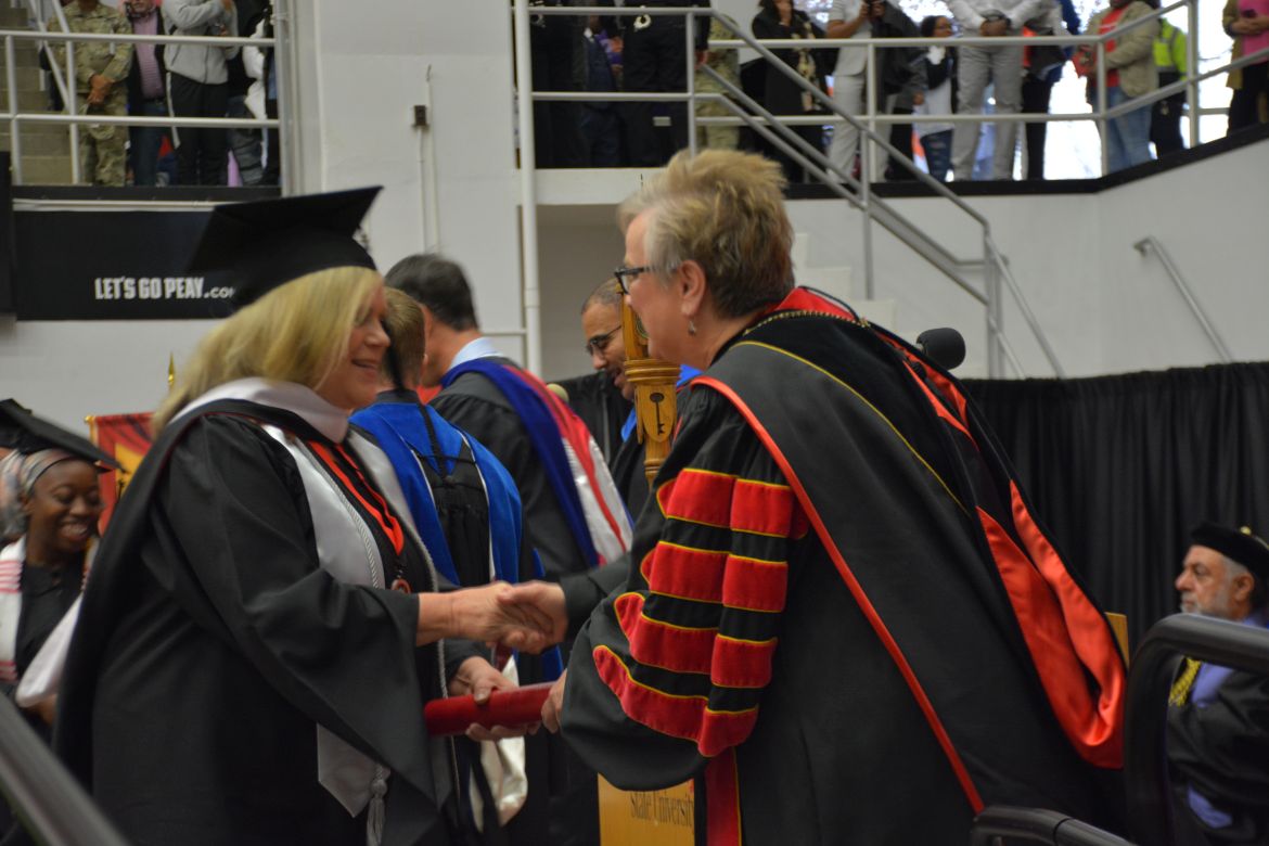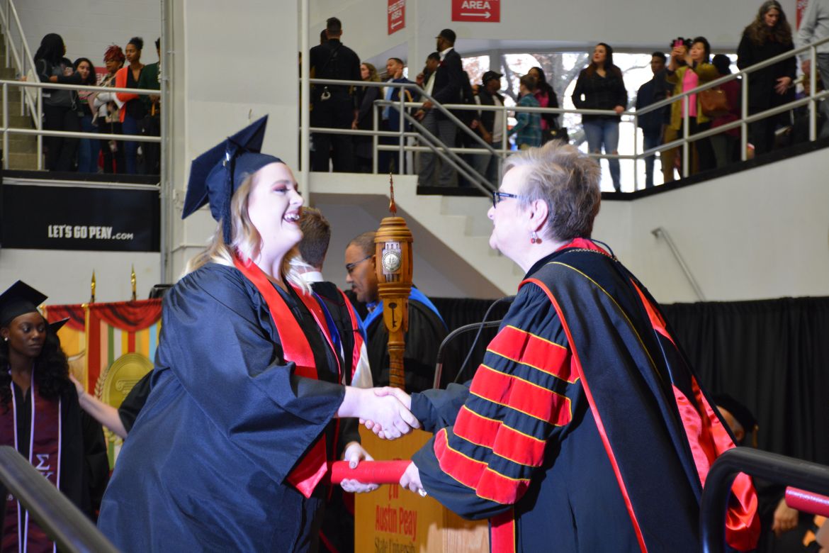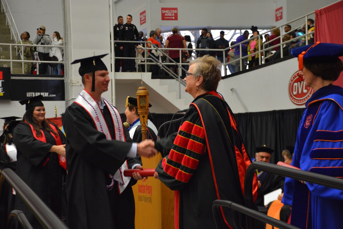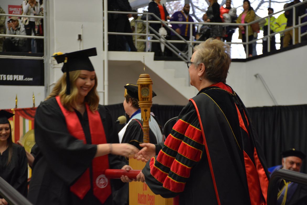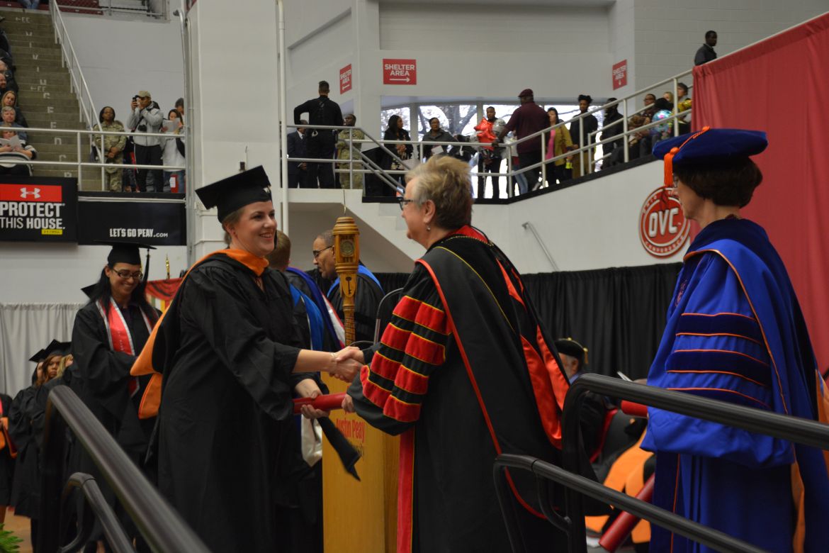 CLARKSVILLE, Tenn. (CLARKSVILLENOW) – Dr. Doris Davenport, Austin Peay State University professor of nursing and recipient of the 2018 National Alumni Association Distinguished Professor Award, delivered the keynote address during the Universityās winter commencement on Friday, Dec. 14.
