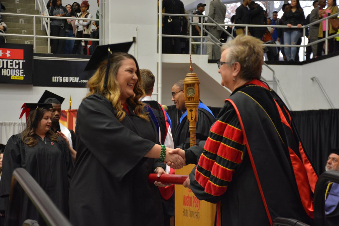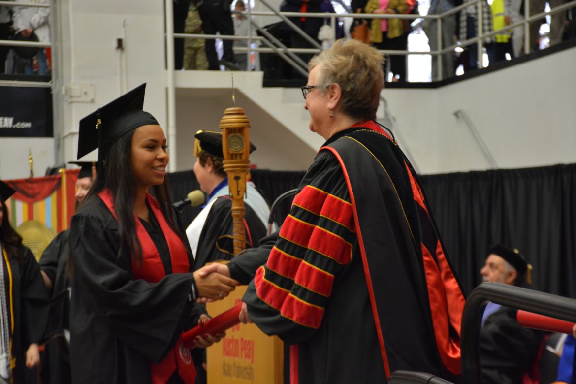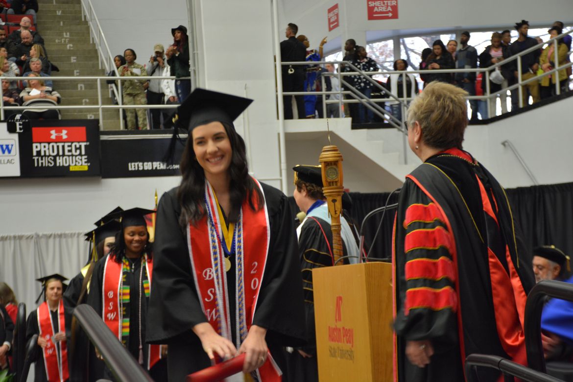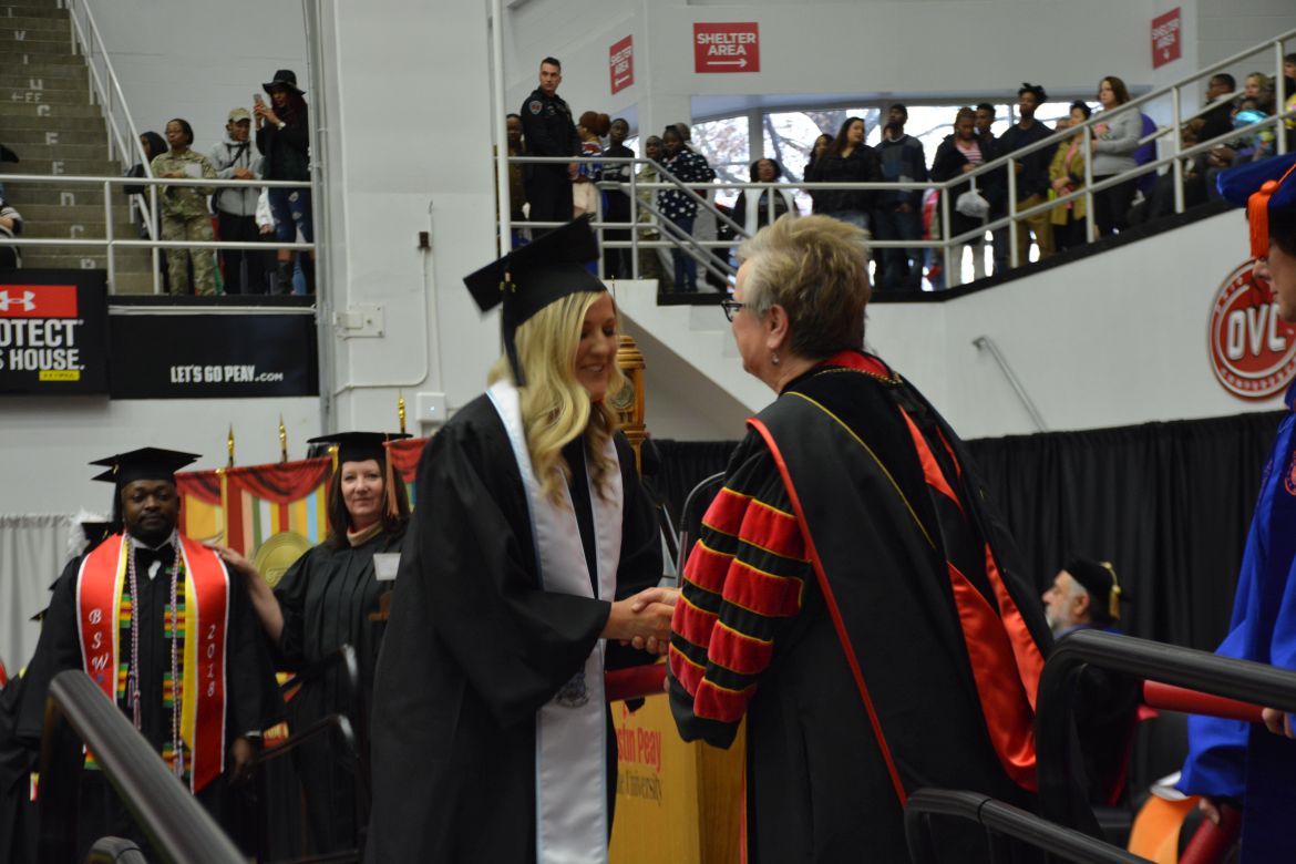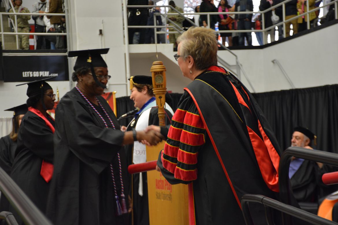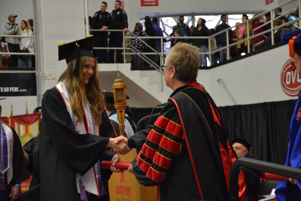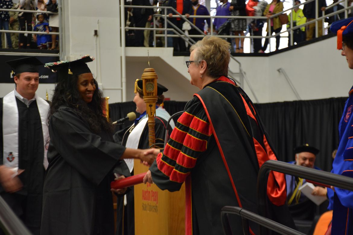 CLARKSVILLE, Tenn. (CLARKSVILLENOW) – Dr. Doris Davenport, Austin Peay State University professor of nursing and recipient of the 2018 National Alumni Association Distinguished Professor Award, delivered the keynote address during the Universityās winter commencement on Friday, Dec. 14.
