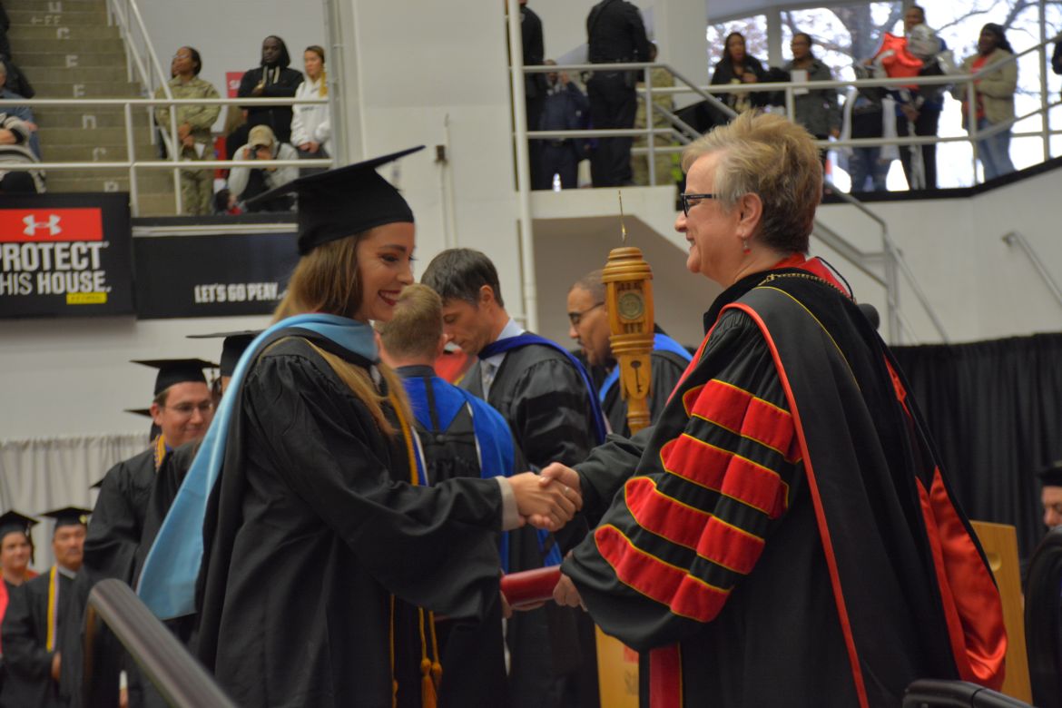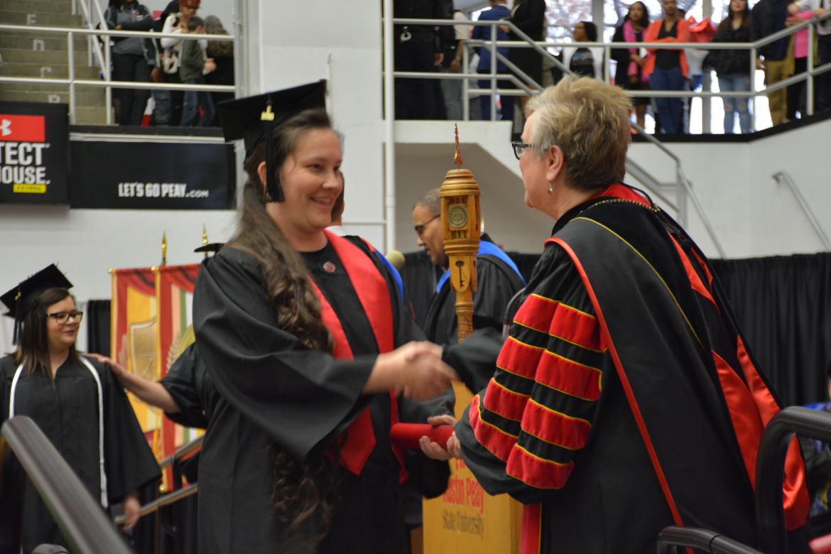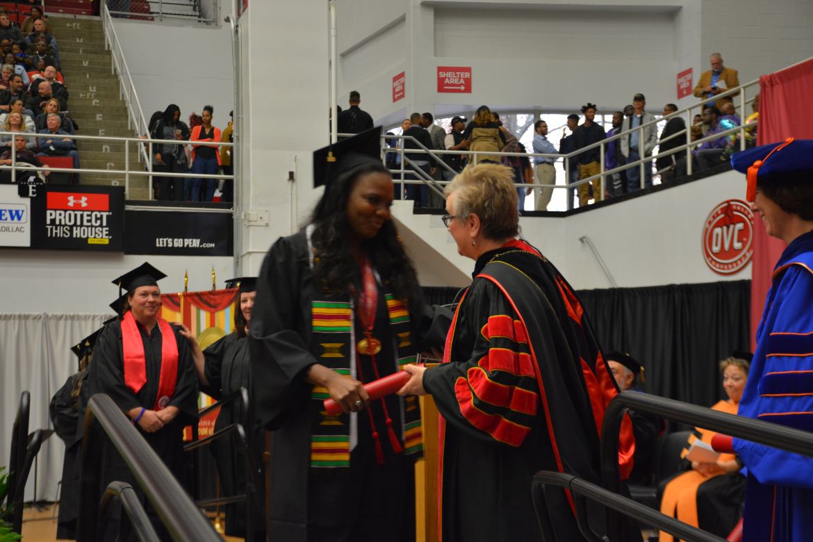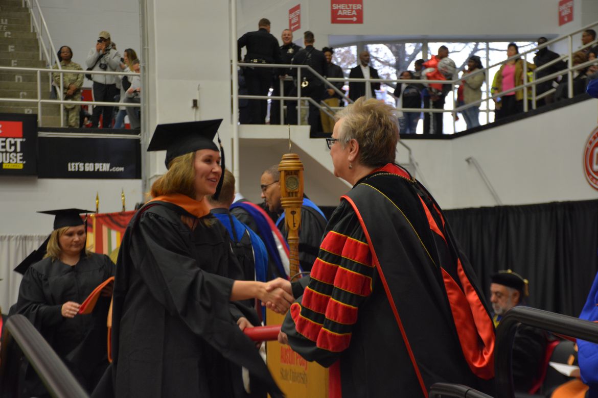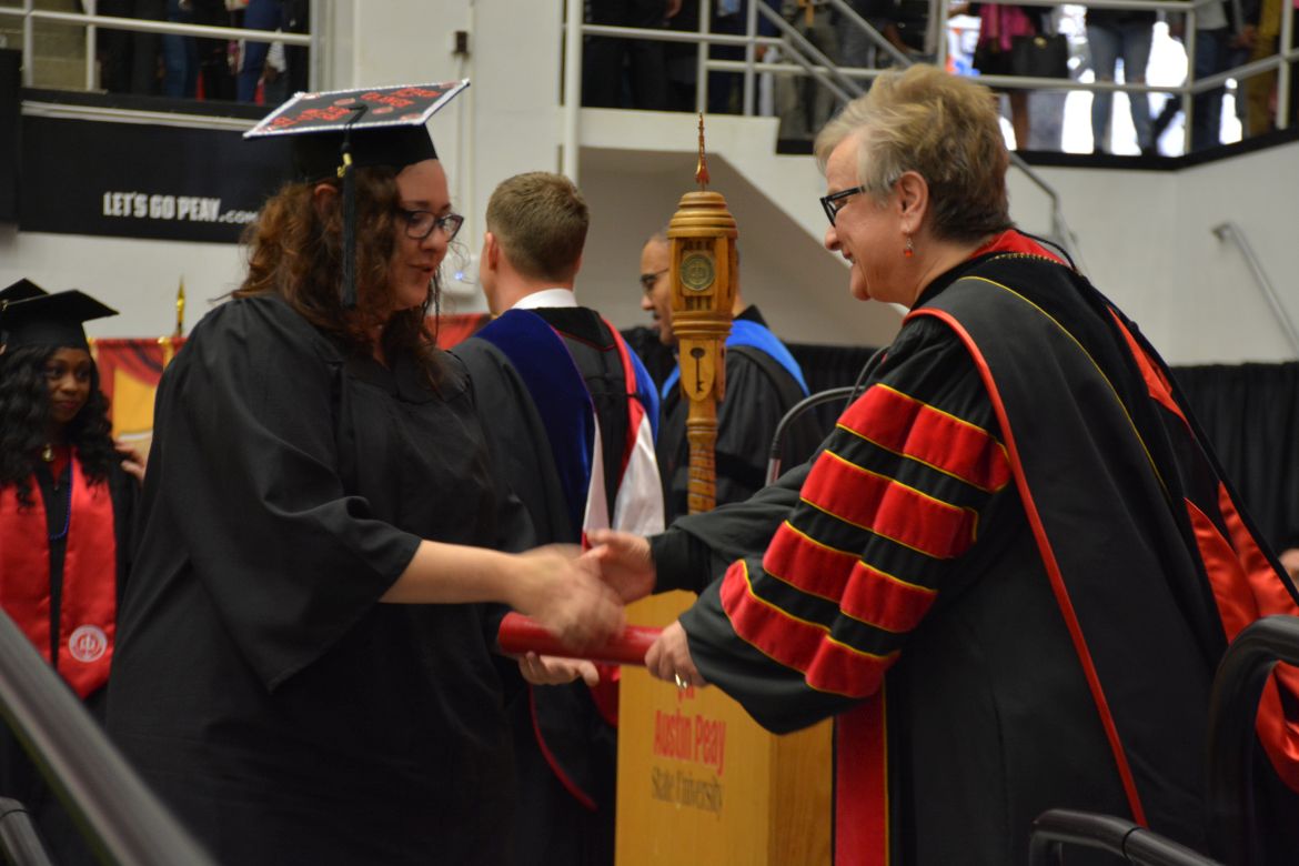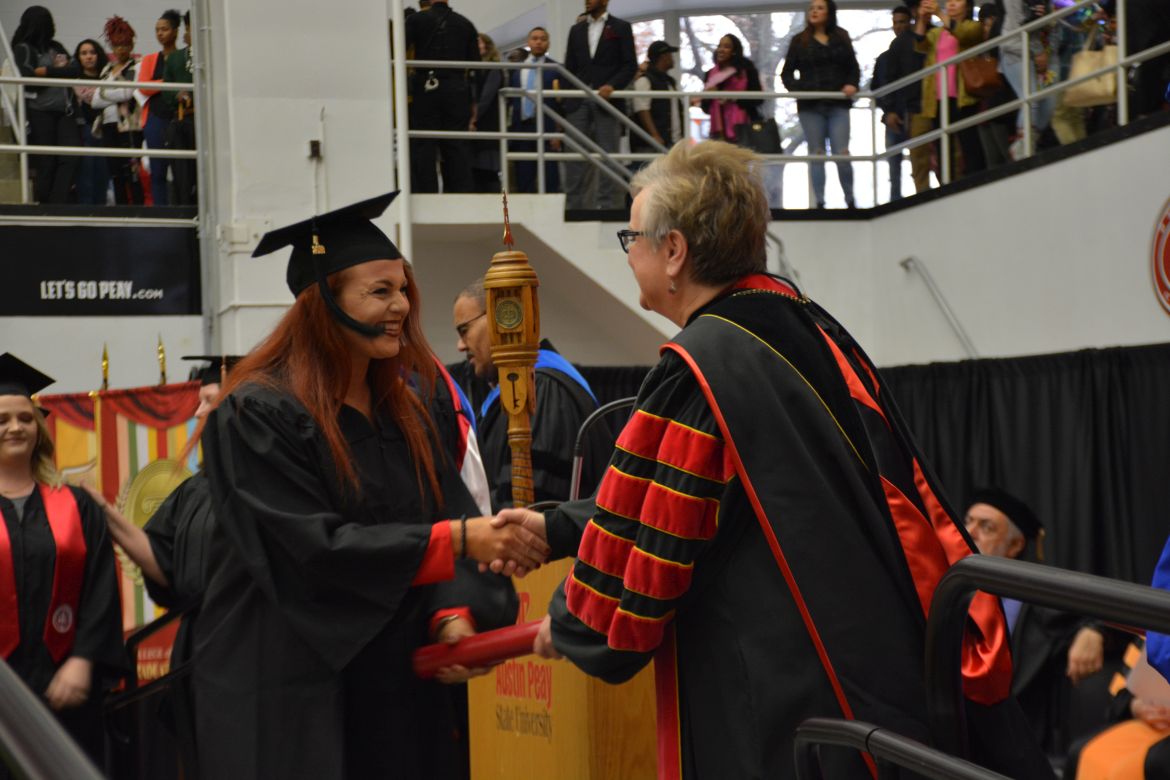 CLARKSVILLE, Tenn. (CLARKSVILLENOW) – Dr. Doris Davenport, Austin Peay State University professor of nursing and recipient of the 2018 National Alumni Association Distinguished Professor Award, delivered the keynote address during the Universityās winter commencement on Friday, Dec. 14.